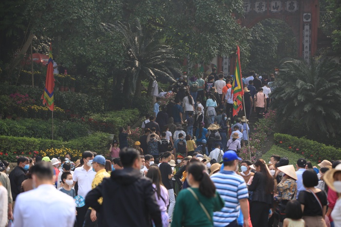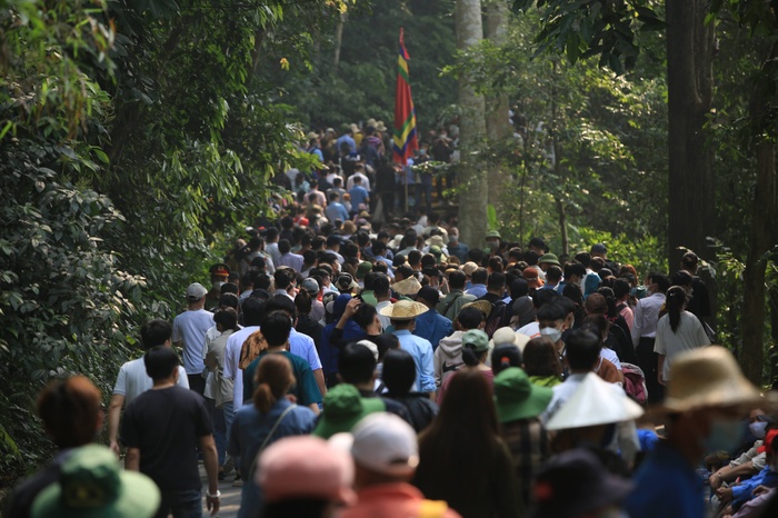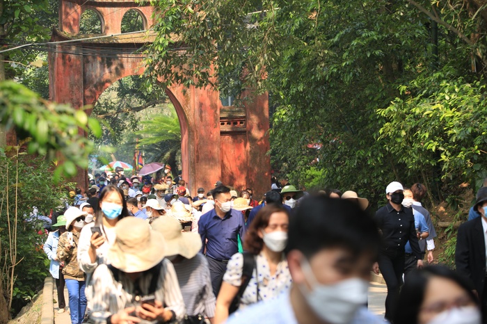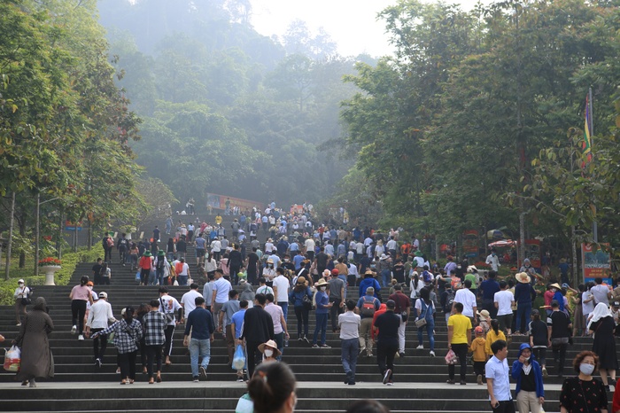 Qua ghi nhận, mặc dù ngày mai, 10/4 (tức 10/3 âm lịch) mới là ngày chính lễ Giỗ Tổ Hùng Vương, nhưng từ sáng sớm nay 9/4, khu vực Đền Hùng đã đông nghẹt du khách đến tham quan và dâng hương.