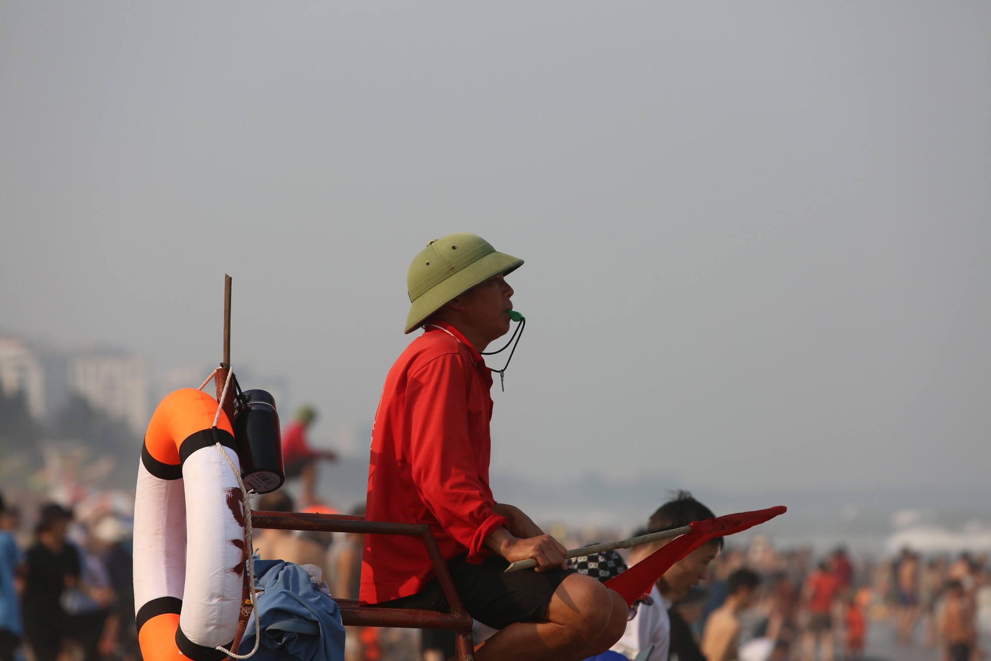 Bước sang ngày nghỉ lễ thứ 4 dịp 30-4 và 1-5, thời tiết nắng nóng vẫn kéo dài, nền nhiệt cao, oi bức nên hàng chục ngàn du khách vẫn đổ về bãi biển Sầm Sơn (Thanh Hóa) rất đông. Trong các ngày nghỉ lễ, có thời điểm bãi biển Sầm Sơn "ken đặc" người chen nhau tắm biển.