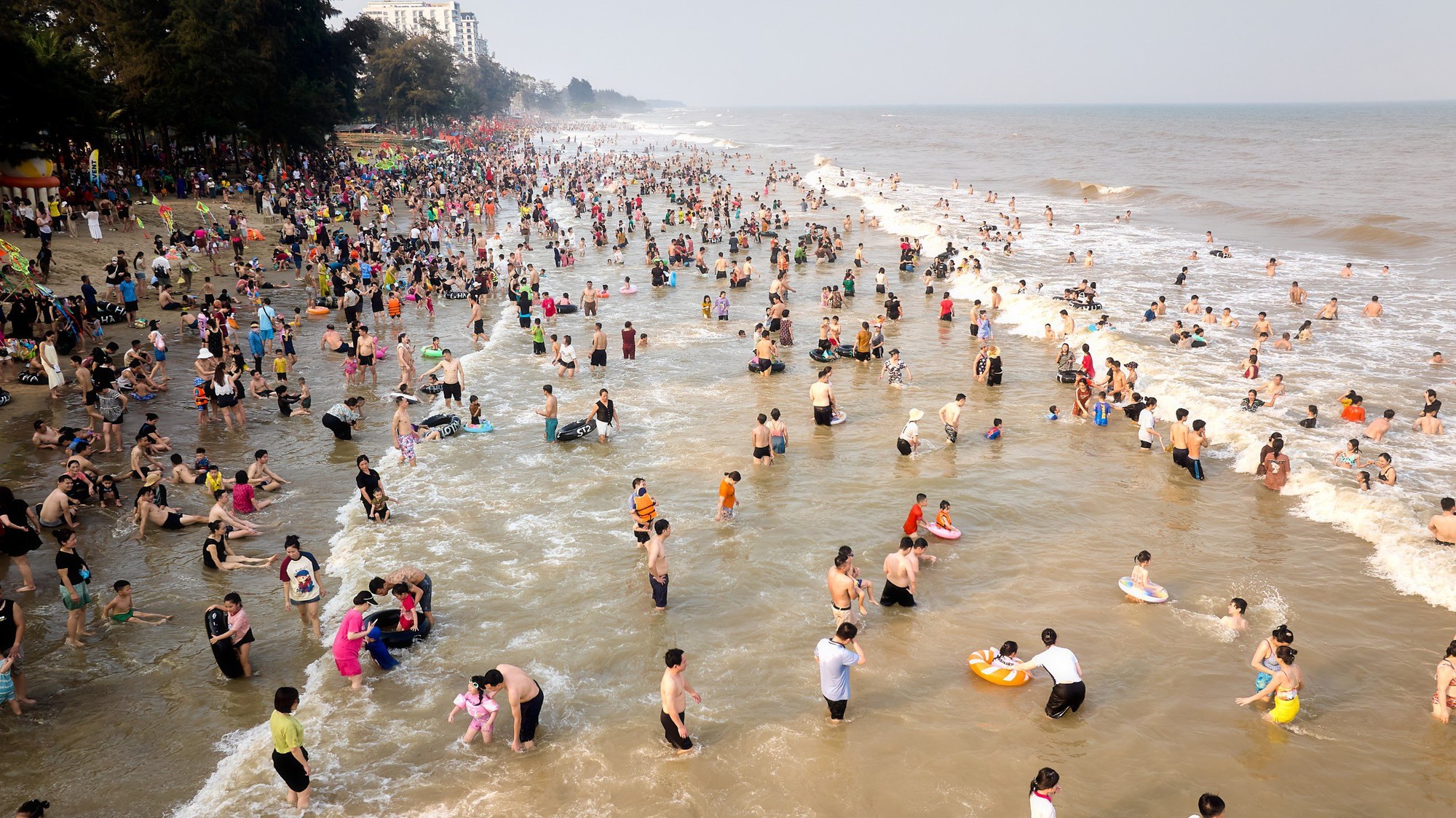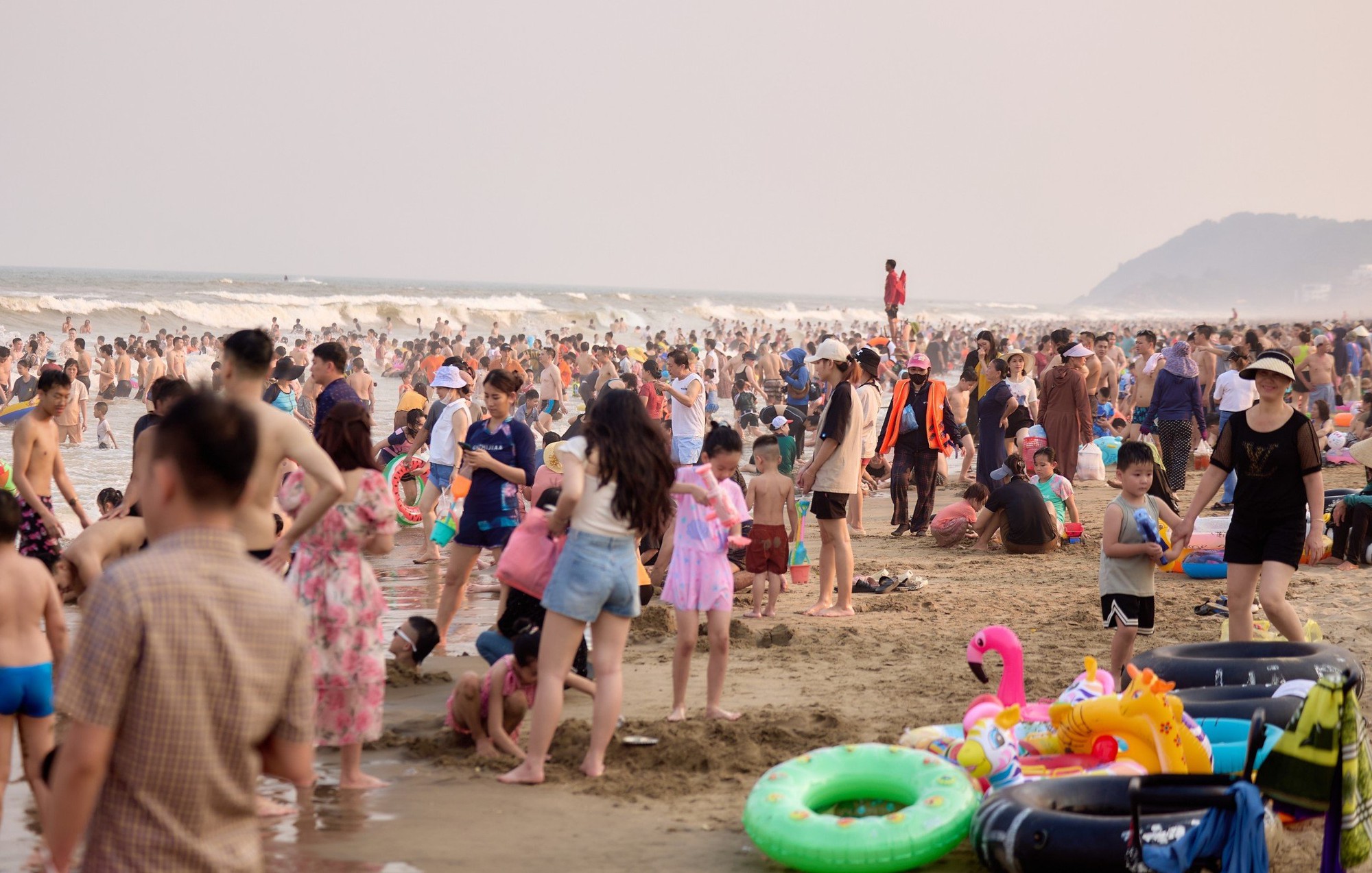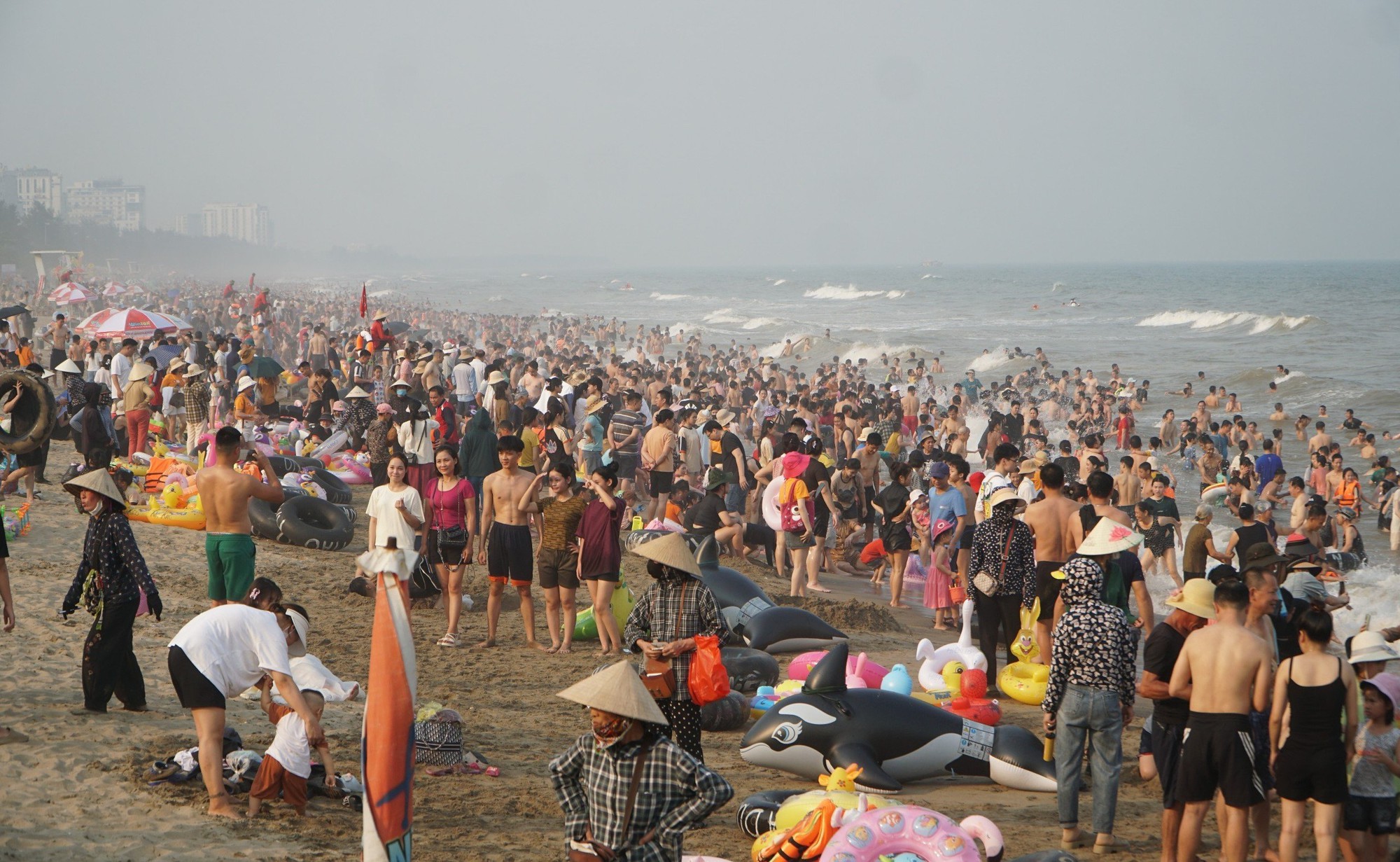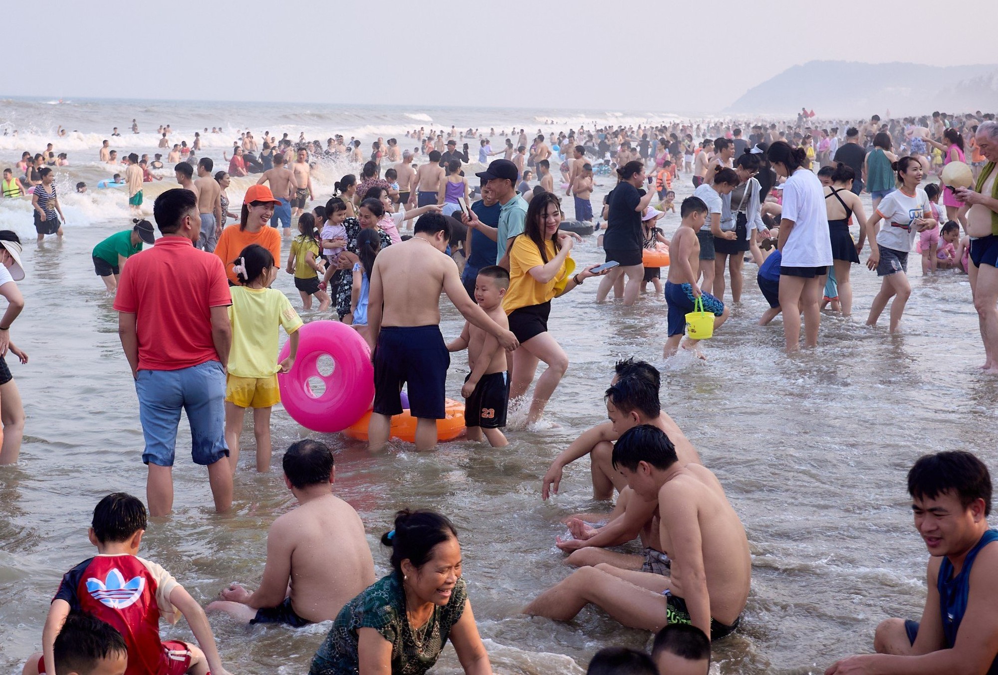 Hình ảnh Sầm Sơn đông kín người tắm biển trong những ngày qua