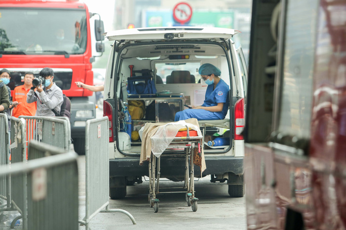 Theo ghi nhận, lúc 7 giờ 15 sáng 4-4, những thi thể đầu tiên của nạn nhân vụ cháy được đưa ra xe cứu thương.