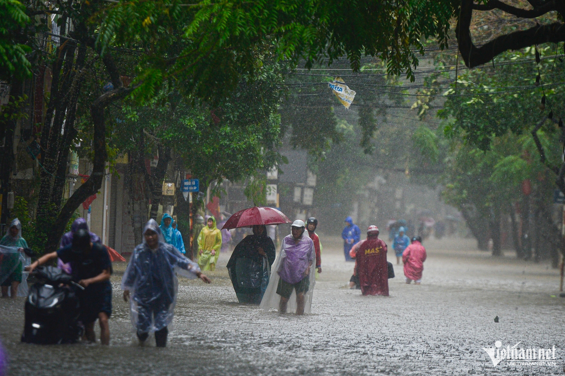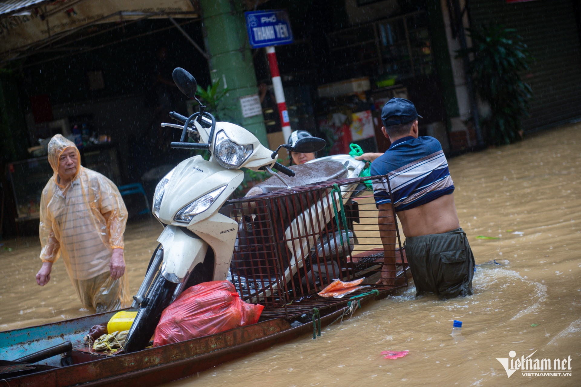 Đến 12h, nhiều nơi đã ngập hơn 1m. Nước tràn vào nhà, ngập nhiều xe cộ.