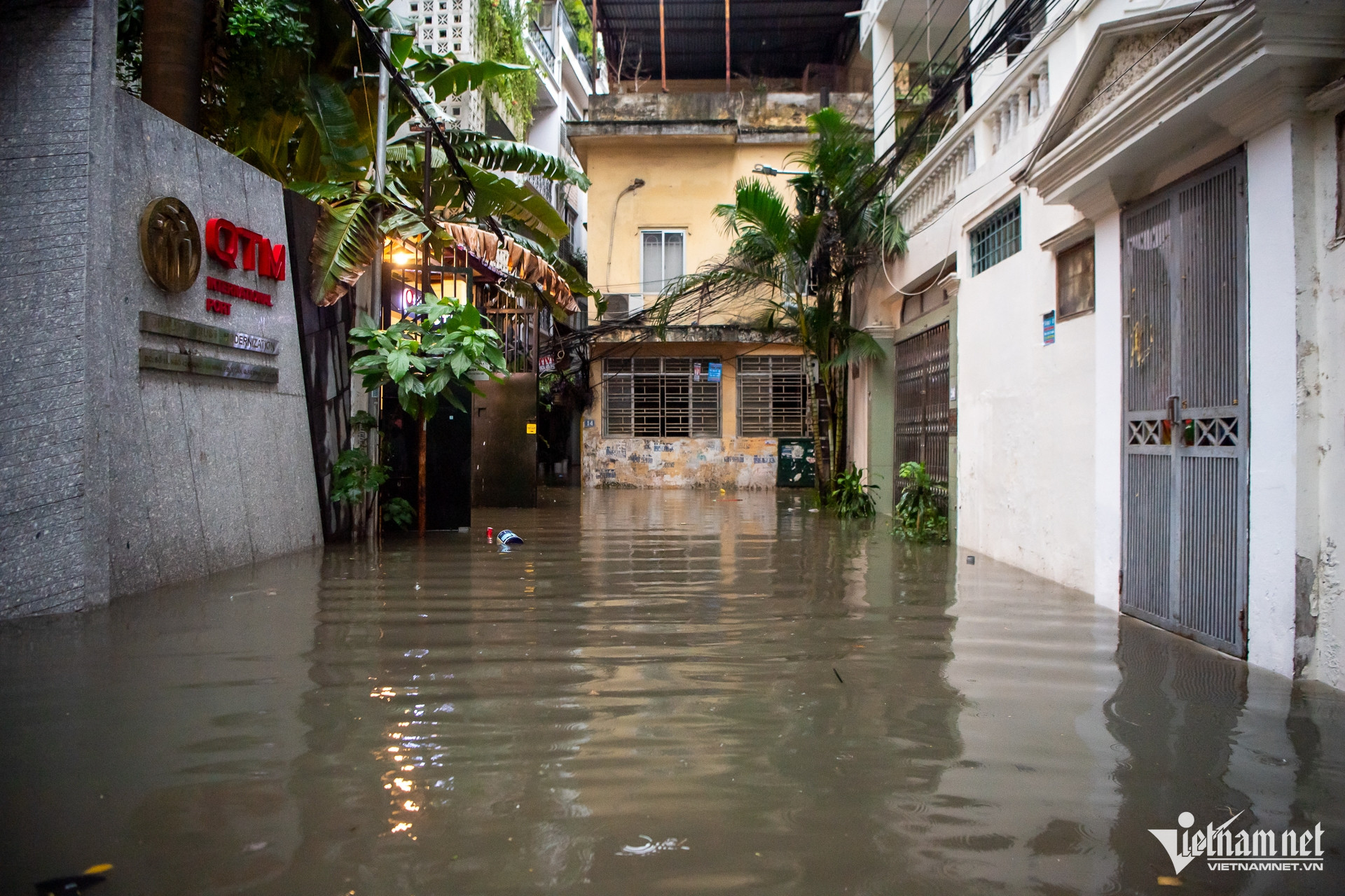 Một số ngõ nhỏ quanh phố Giang Văn Minh bị ngập sâu, nước dâng tới ngang hông người lớn. Các quán ăn do không thể đón khách buộc phải đóng cửa, nhân viên nghỉ sớm.