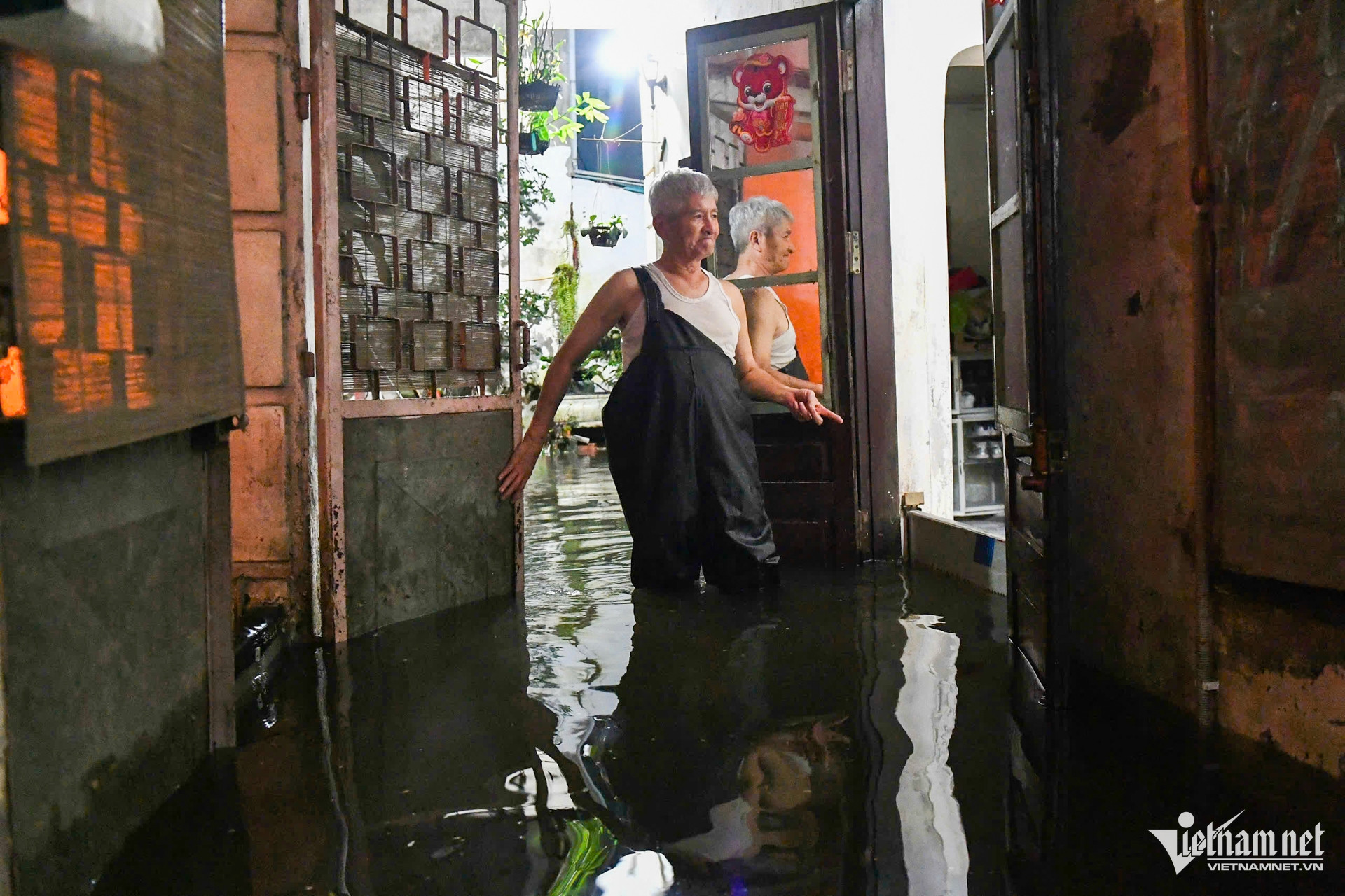 Trong khi dùng vòi hút công suất lớn để hút nước từ trong nhà ra ngoài, ông Vĩnh cho biết, tình trạng ngập sau mỗi trận mưa lớn như thế này diễn ra đã chục năm nay. "Mưa to, mưa nhỏ cứ kéo dài chừng 10 phút thôi là ngập gần 1 mét. Trước đây chỗ nhà tôi thấp hơn nên cả ngõ quyết định mỗi hộ tự góp 8 triệu đồng để nâng mặt ngõ lên nhưng nước vẫn ngập vào nhà thường xuyên", ông Vĩnh nói.