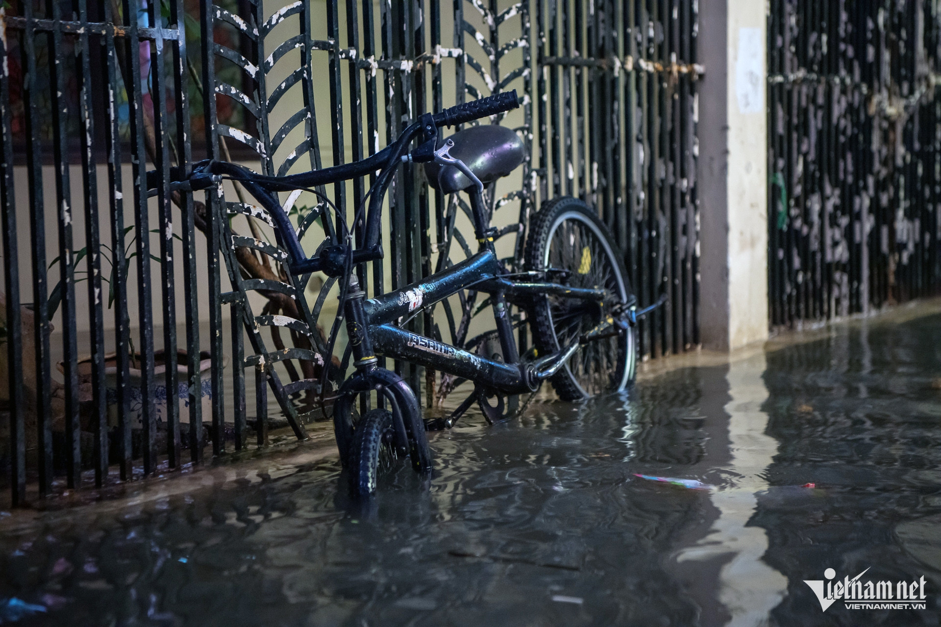 Trong ngõ, điểm ngập thấp nhất chừng 20cm, điểm nặng nhất khoảng 80cm.