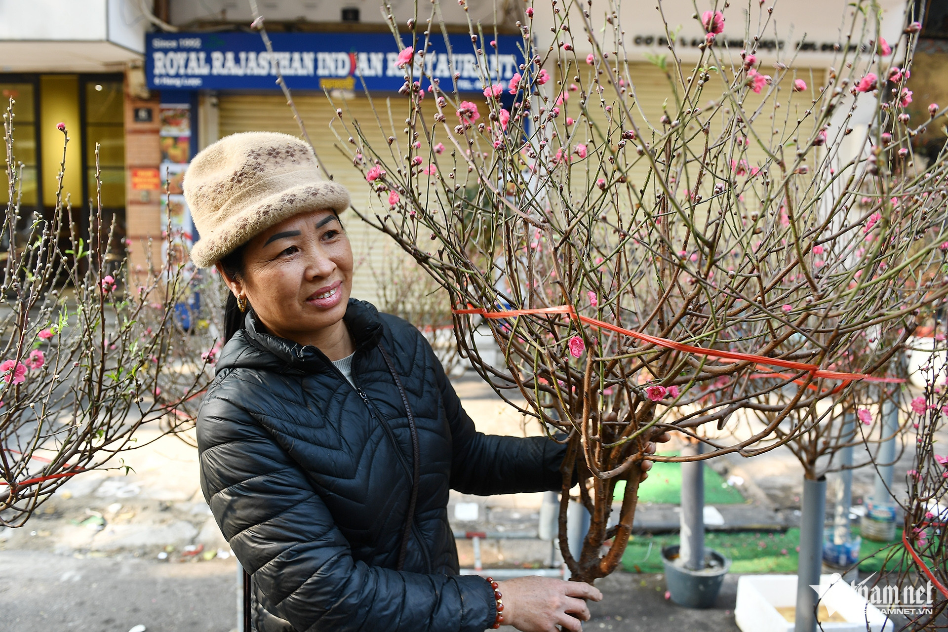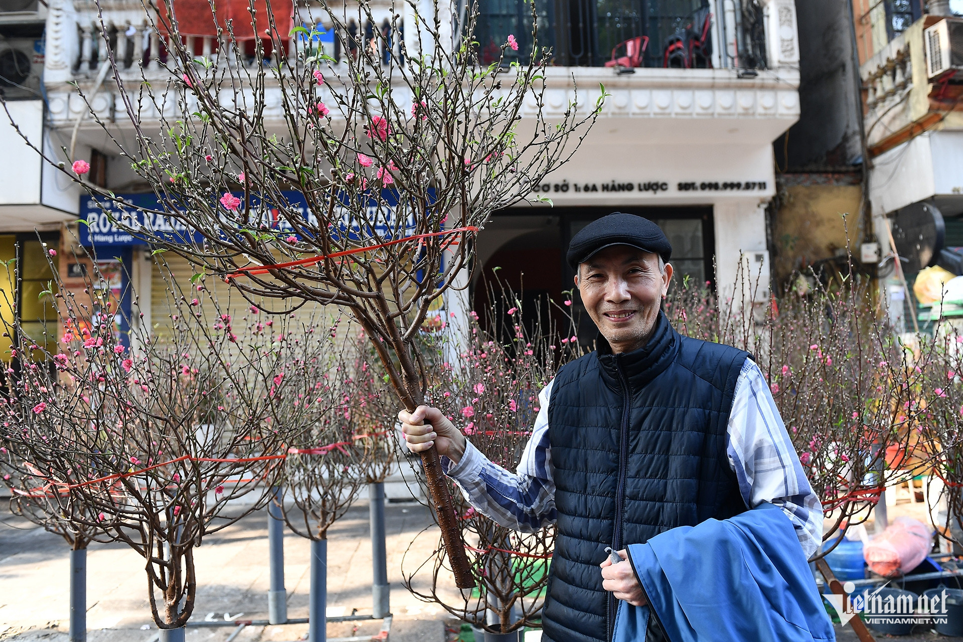 Chọn được cành đào đẹp nhờ đi chợ hoa sớm, ông Hùng khoe với nữ tiểu thương ở chợ hoa Hàng Lược (Hà Nội) rằng được mấy người cháu biếu tiền để ăn Tết, mỗi cháu đưa 3 triệu đồng.