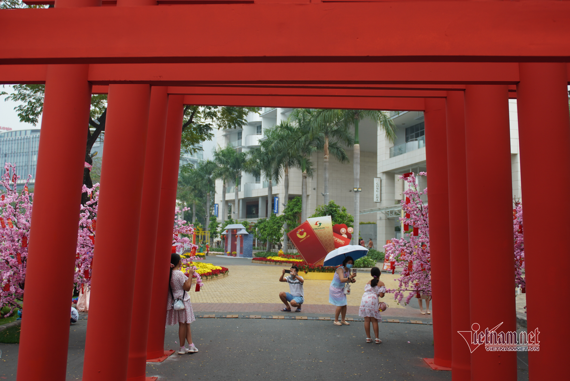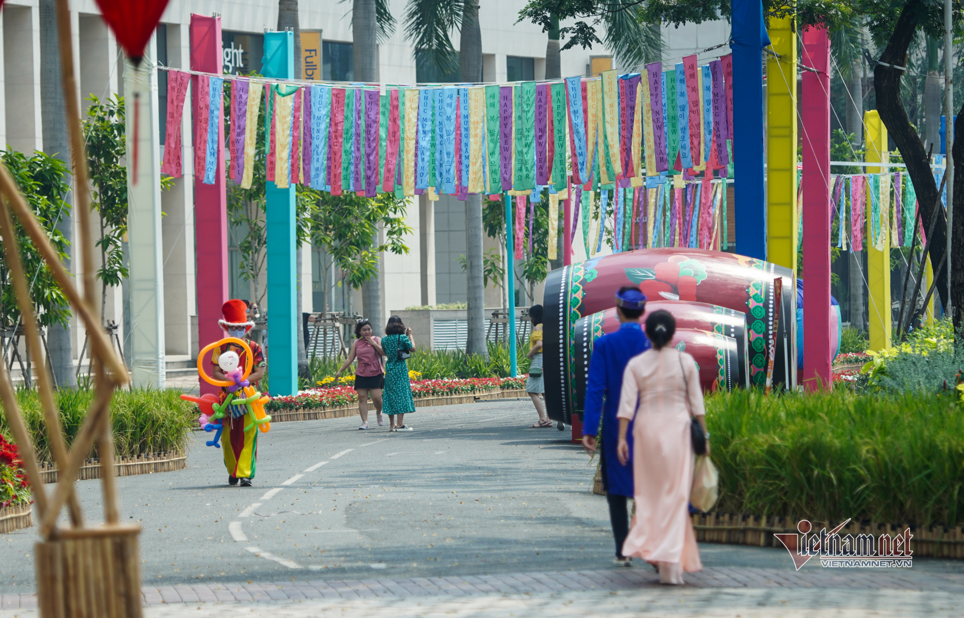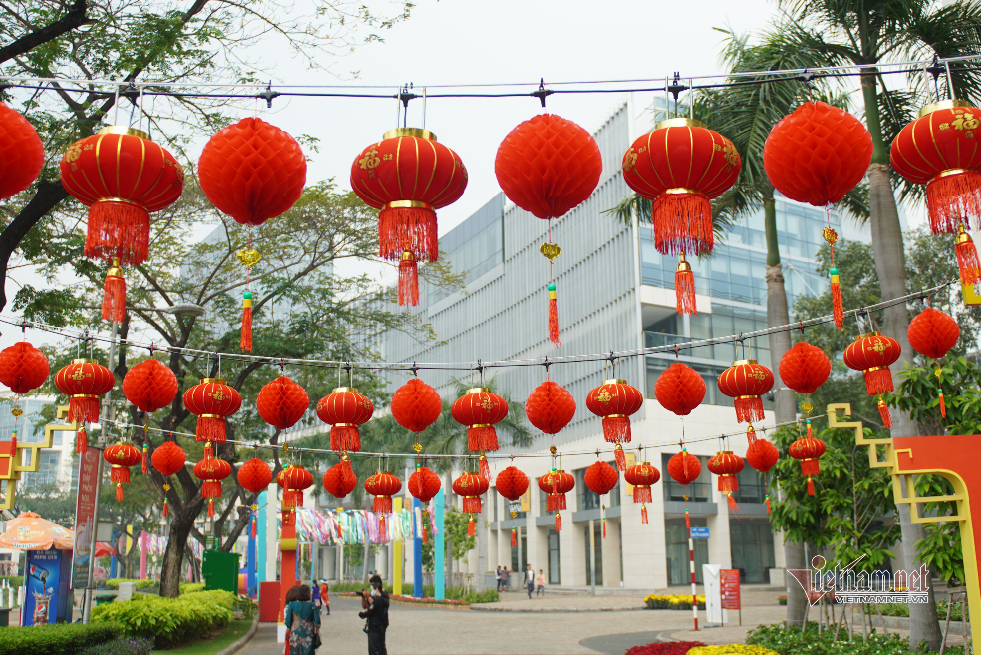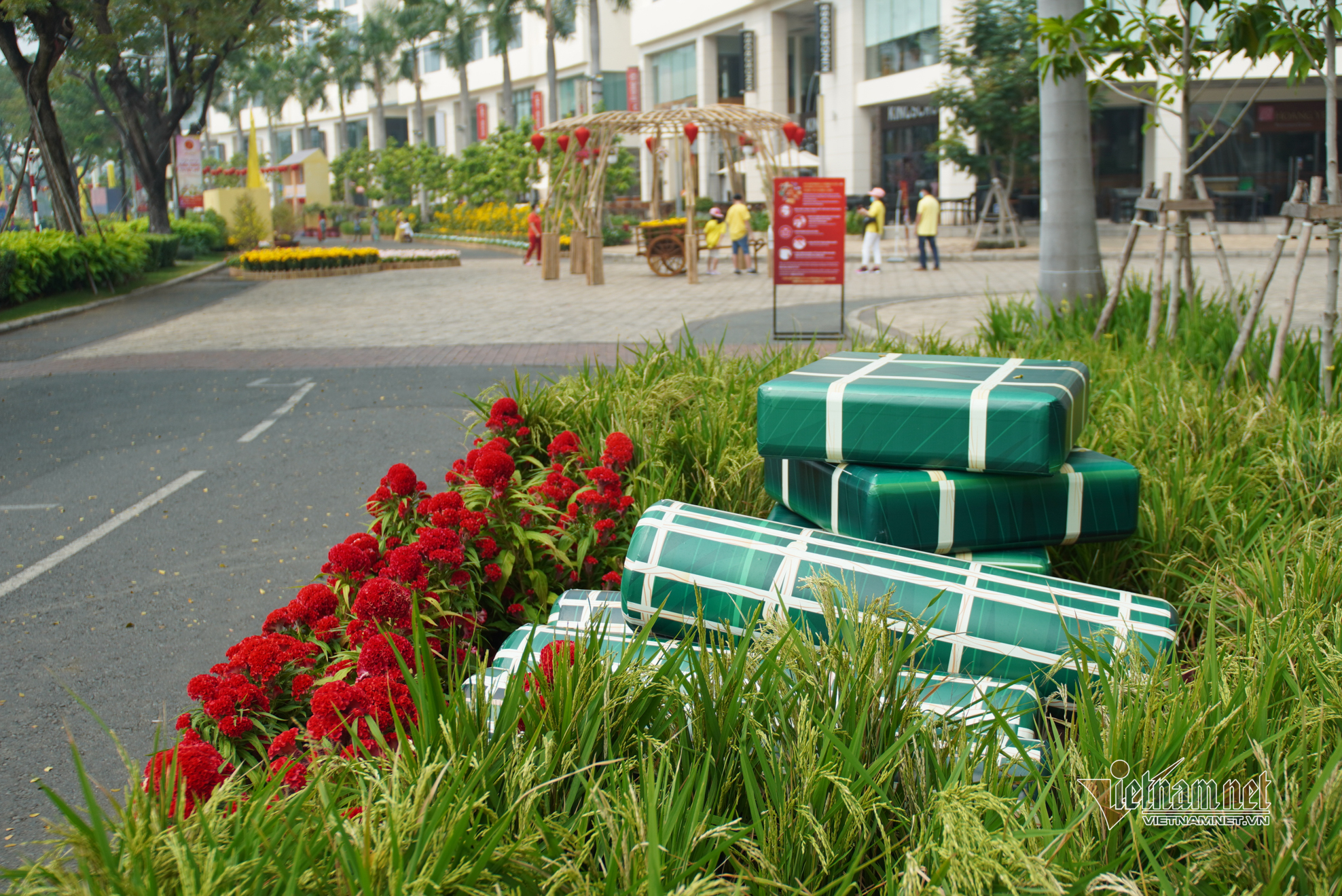 Đường hoa xuân Phú Mỹ Hưng (quận 7, TP.HCM) bày trí đơn giản để phòng dịch Covid-19 nhưng không vì thế mà kém phần hấp dẫn, đặc sắc, mang nét đặc trưng 3 miền và phong cách Á Đông của các quốc gia cùng ăn Tết.
