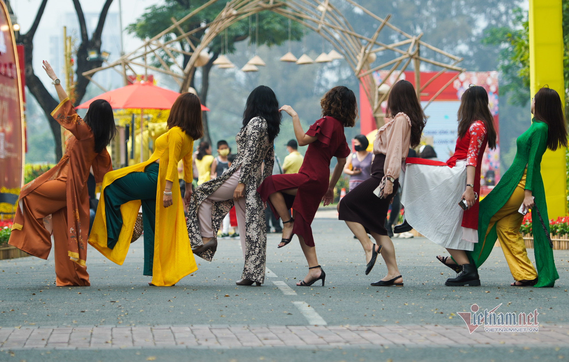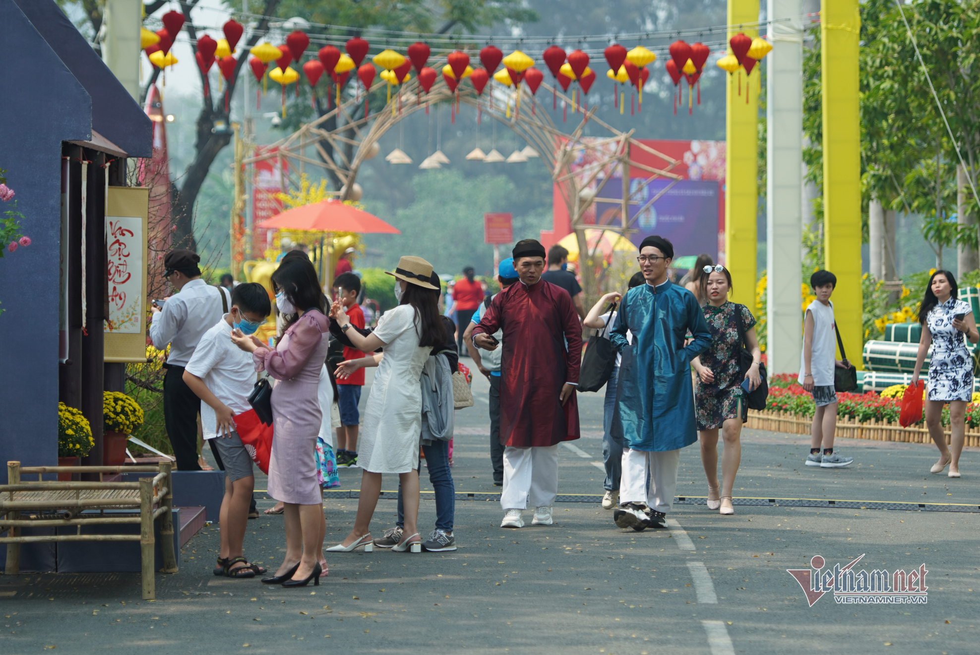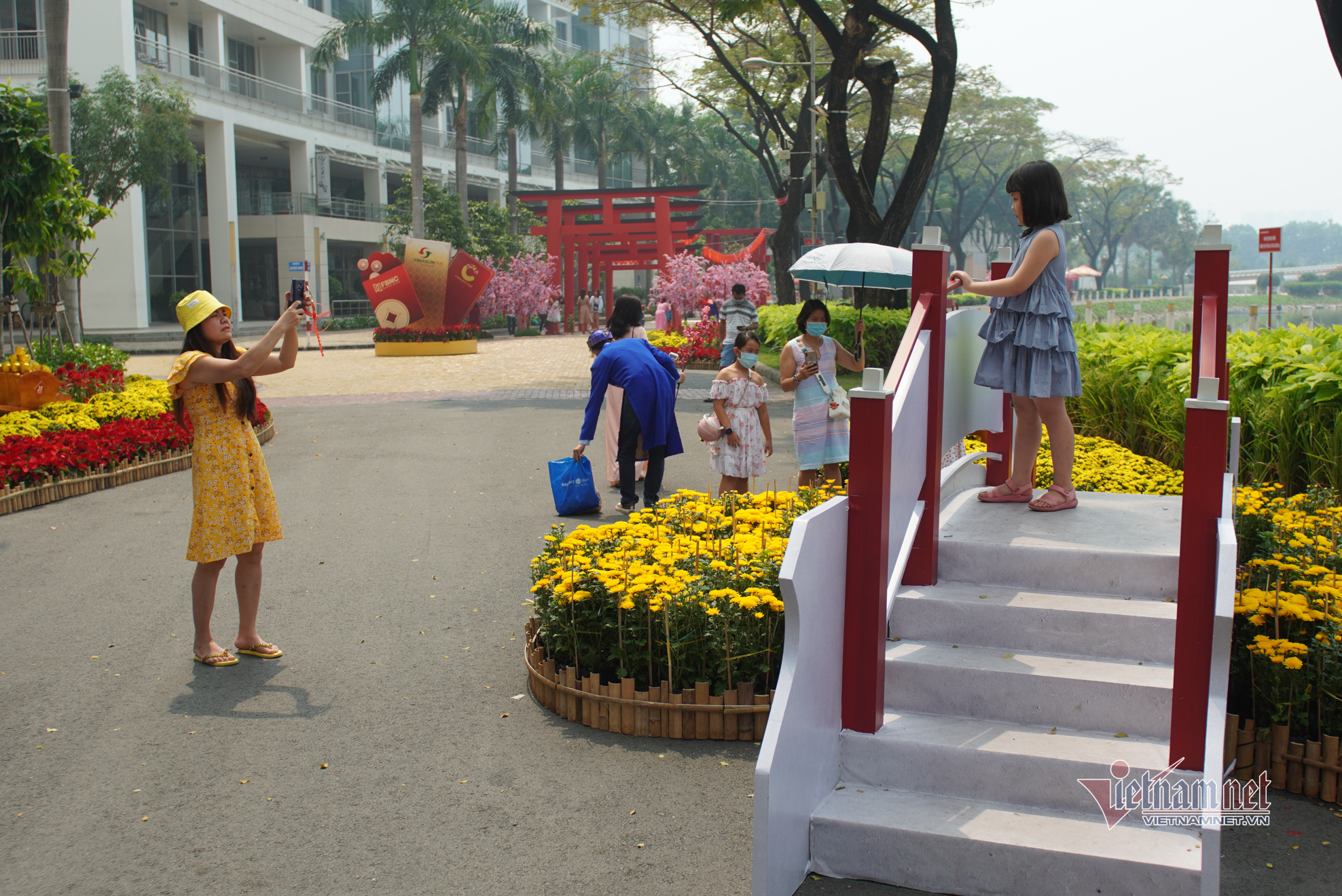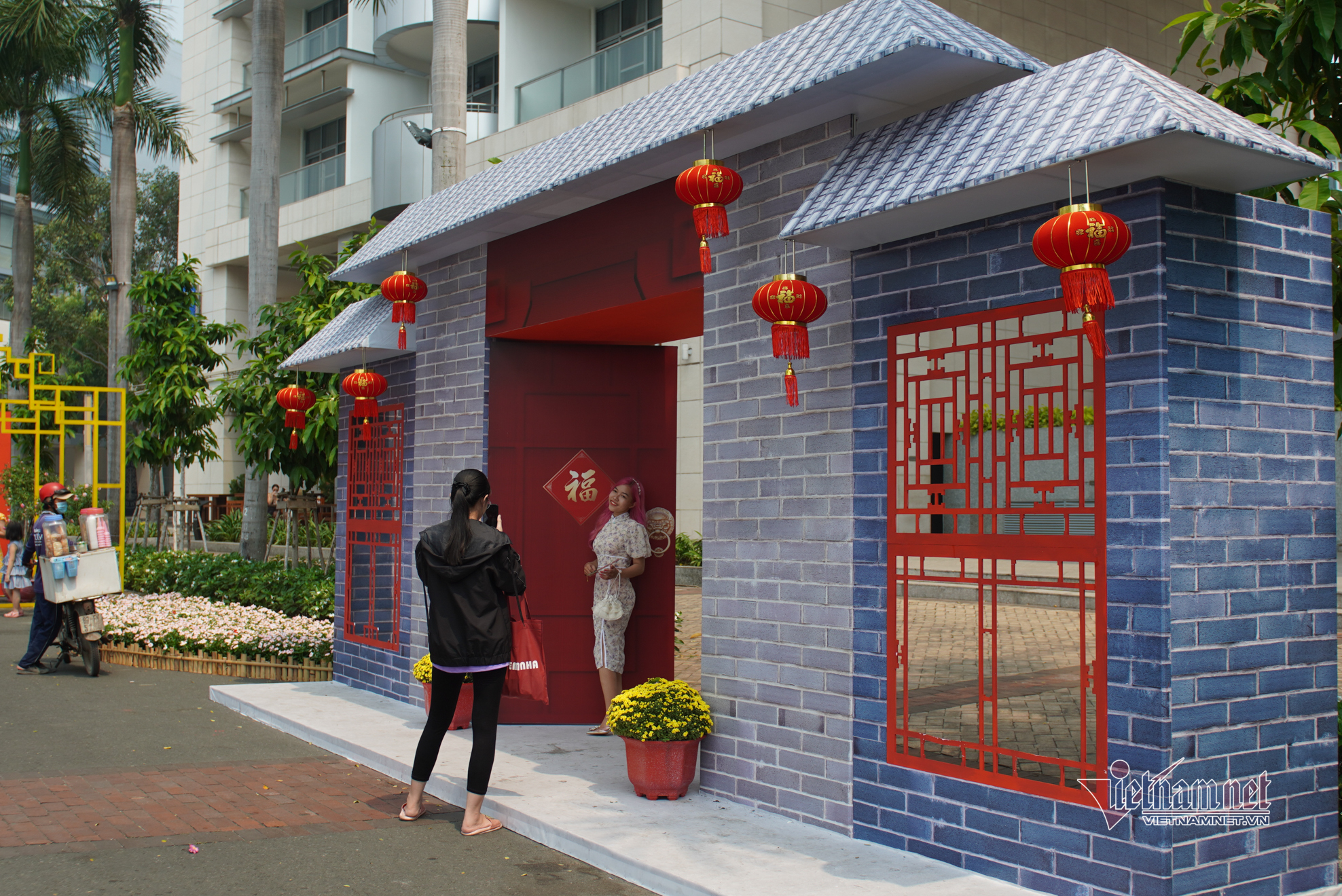 Đường hoa xuân Phú Mỹ Hưng (quận 7, TP.HCM) bày trí đơn giản để phòng dịch Covid-19 nhưng không vì thế mà kém phần hấp dẫn, đặc sắc, mang nét đặc trưng 3 miền và phong cách Á Đông của các quốc gia cùng ăn Tết.