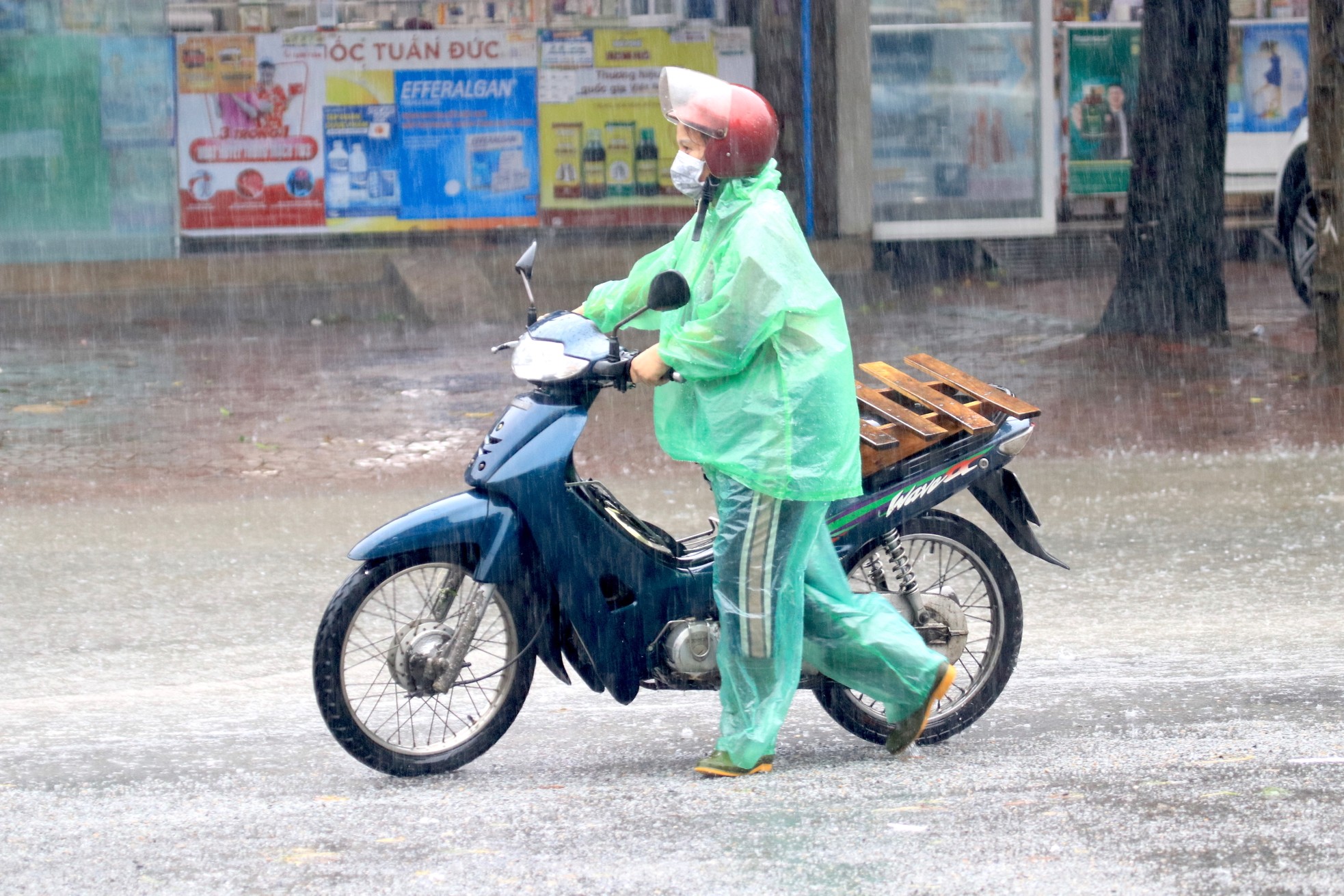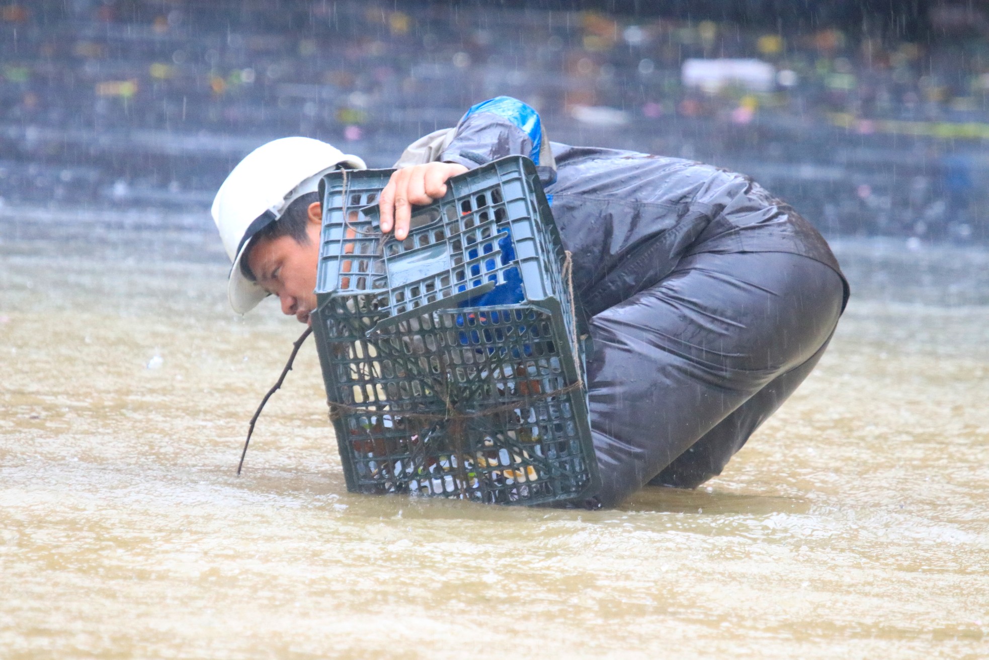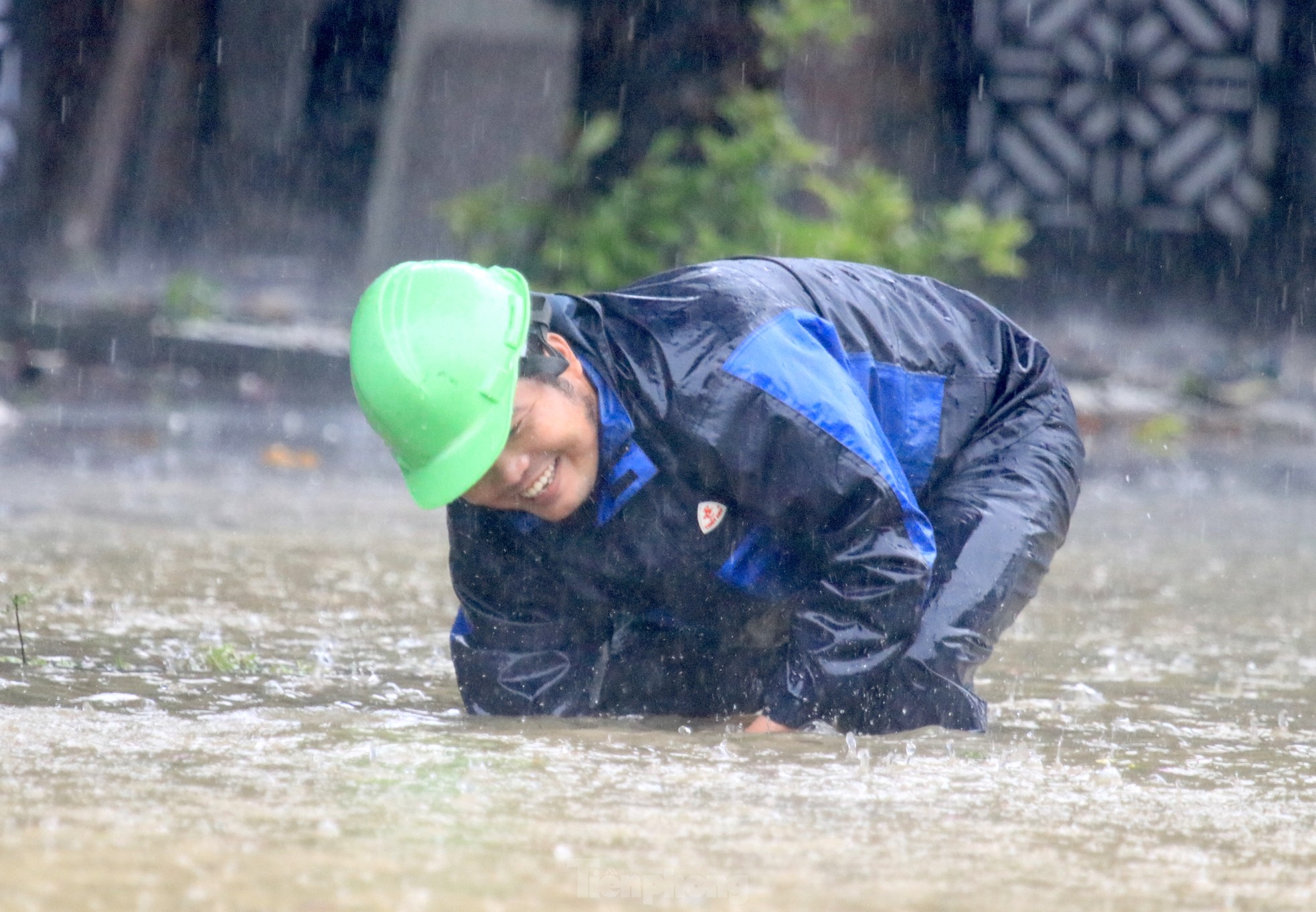 23/09/2024 21:07Đường ngập sâu, dân bì bõm mang thùng xốp làm thuyền kéo đồ trên phố