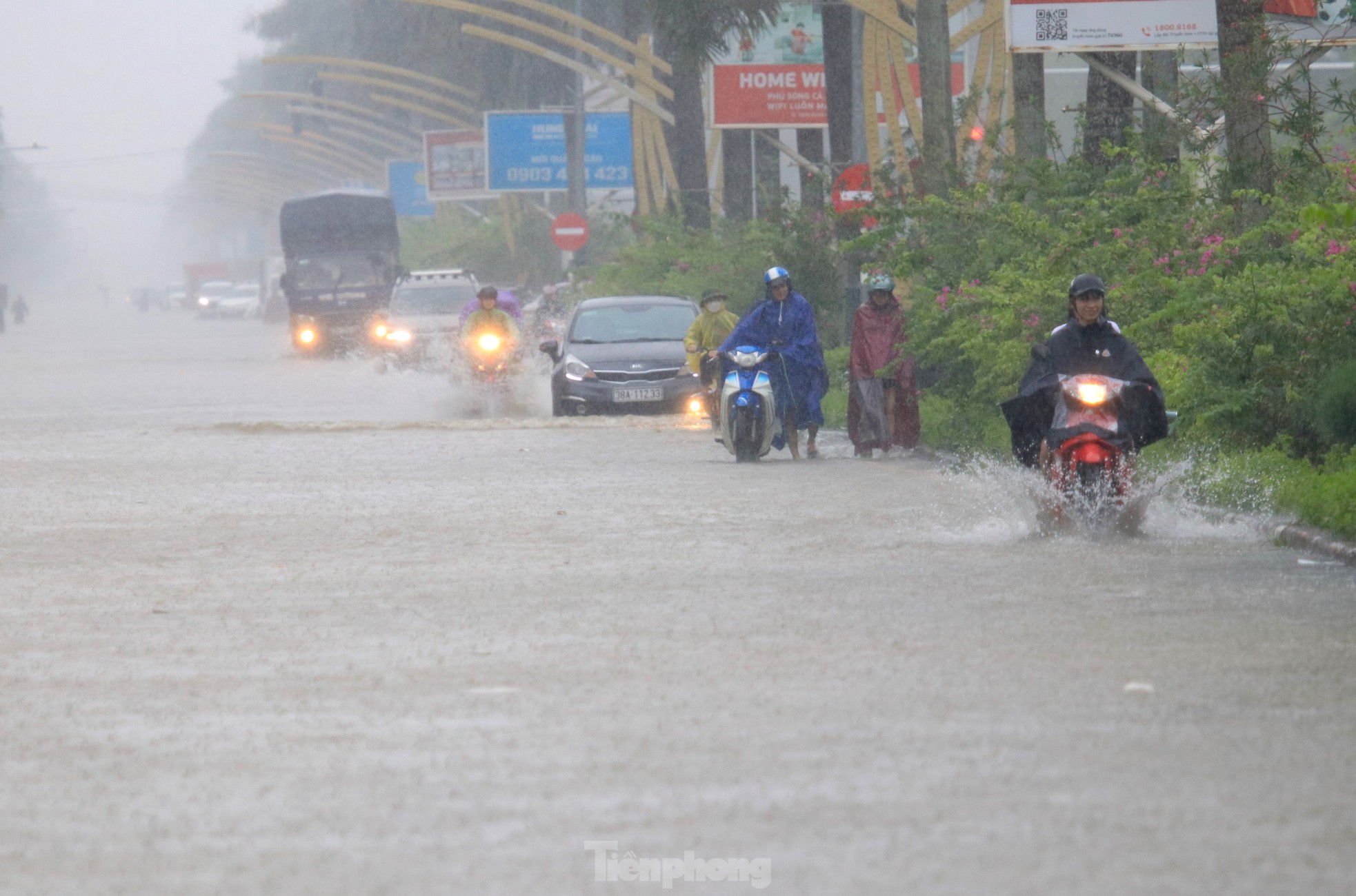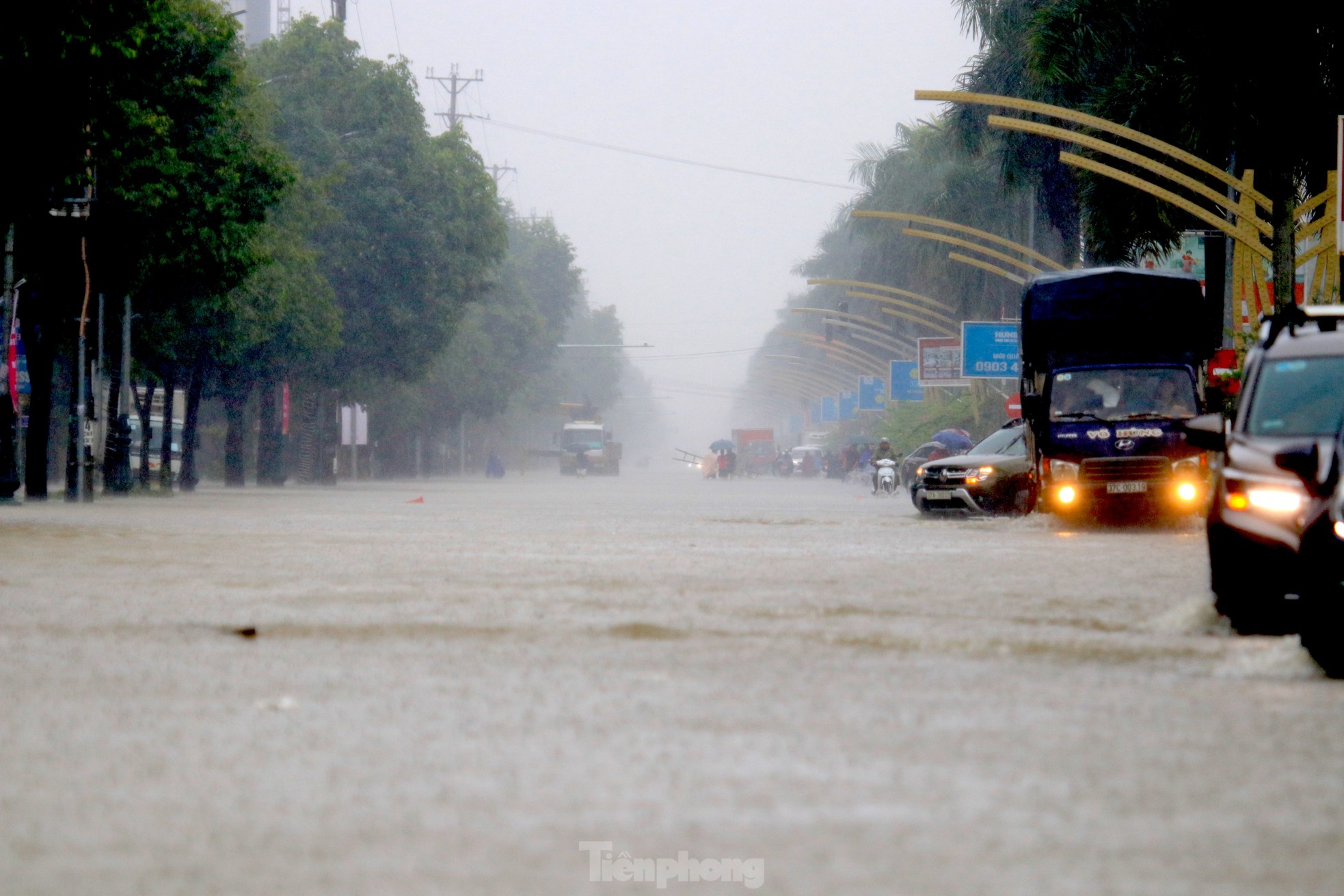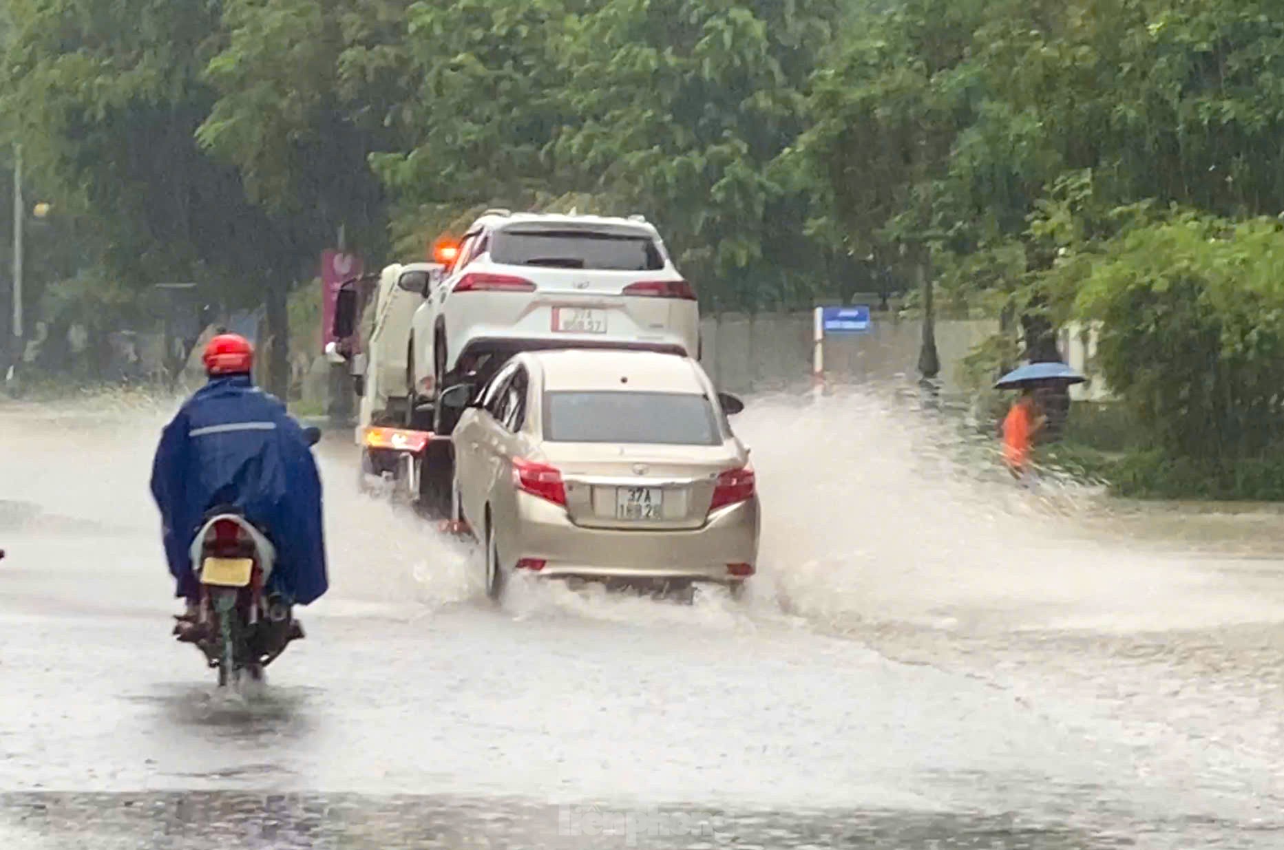 Mưa lớn từ đêm 22/9 kéo dài đến trưa 23/9 đã khiến nhiều tuyến đường ở thành phố Vinh (Nghệ An) ngập sâu trong nước. Nhiều nơi, nước ngập sâu từ 0,5-0,7m, người dân và các phương tiện đi lại khó khăn.