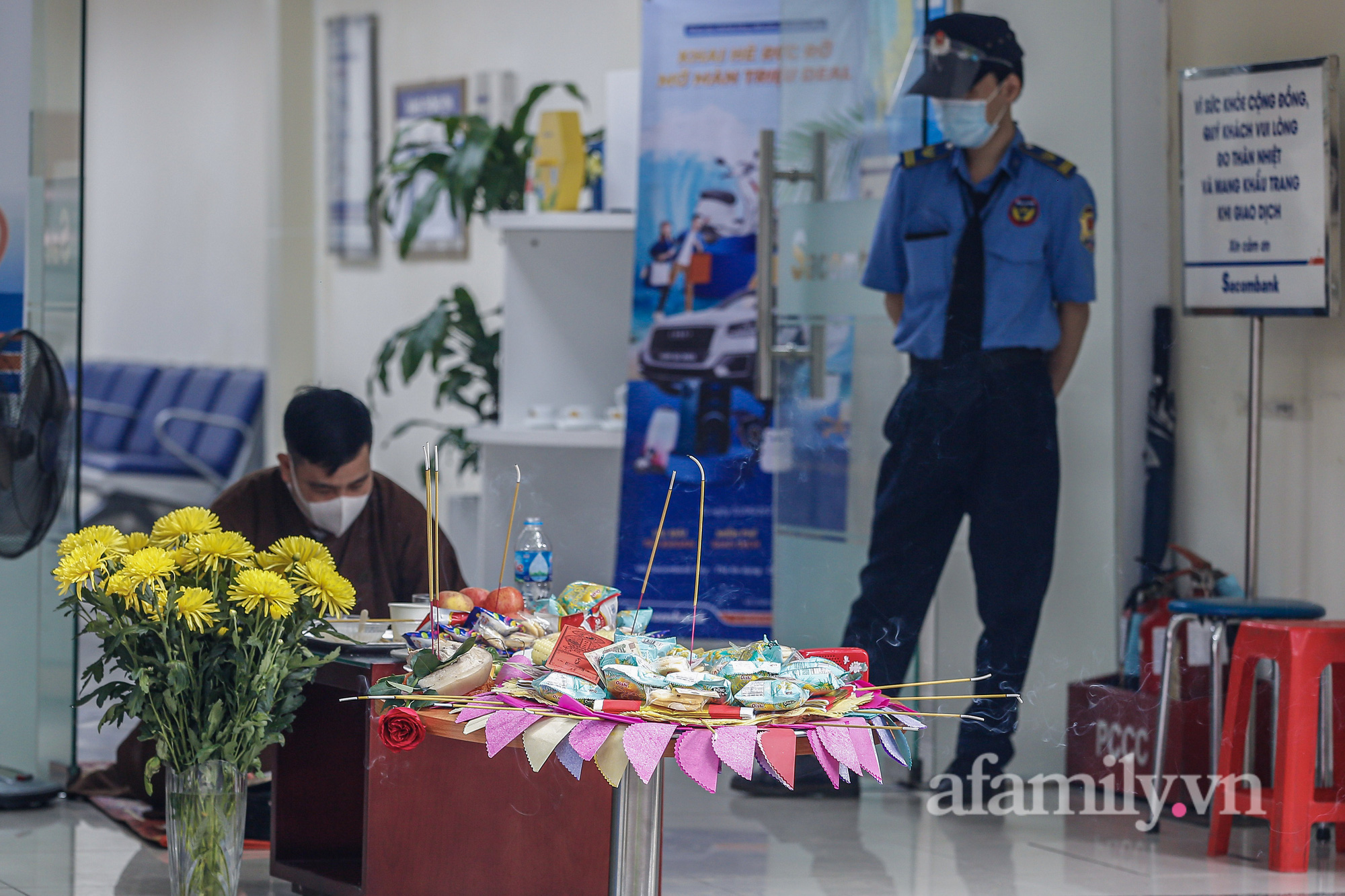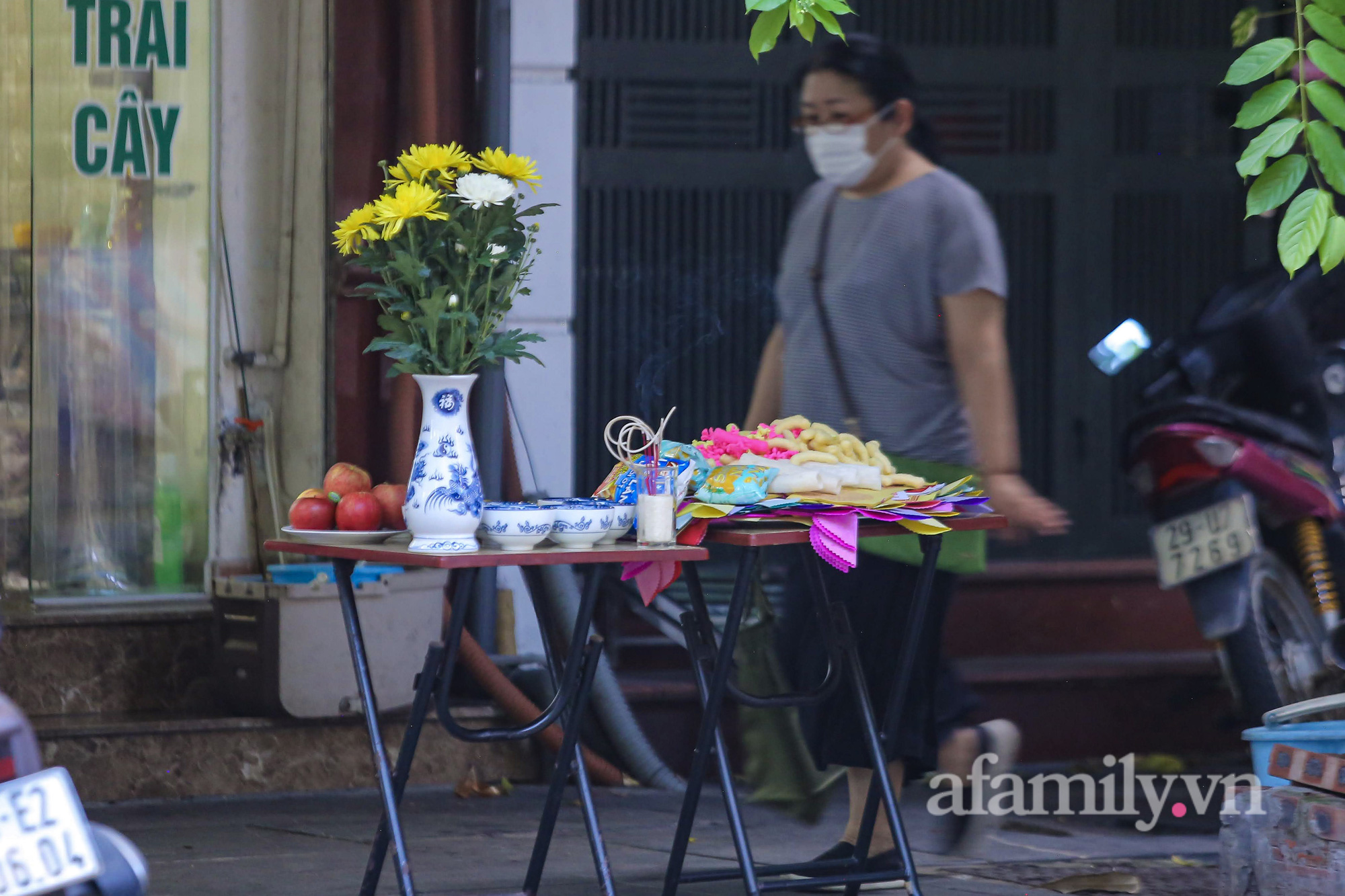Trong những khu "vùng xanh" người dân tuy hạn chế đi lại nhưng vẫn không quên cúng Rằm.