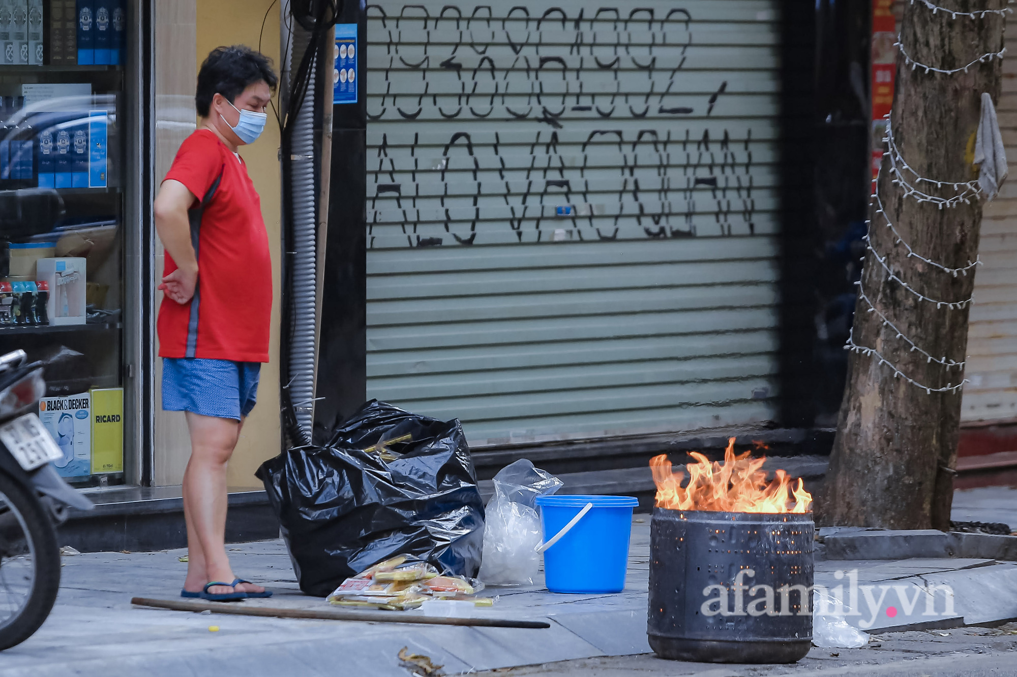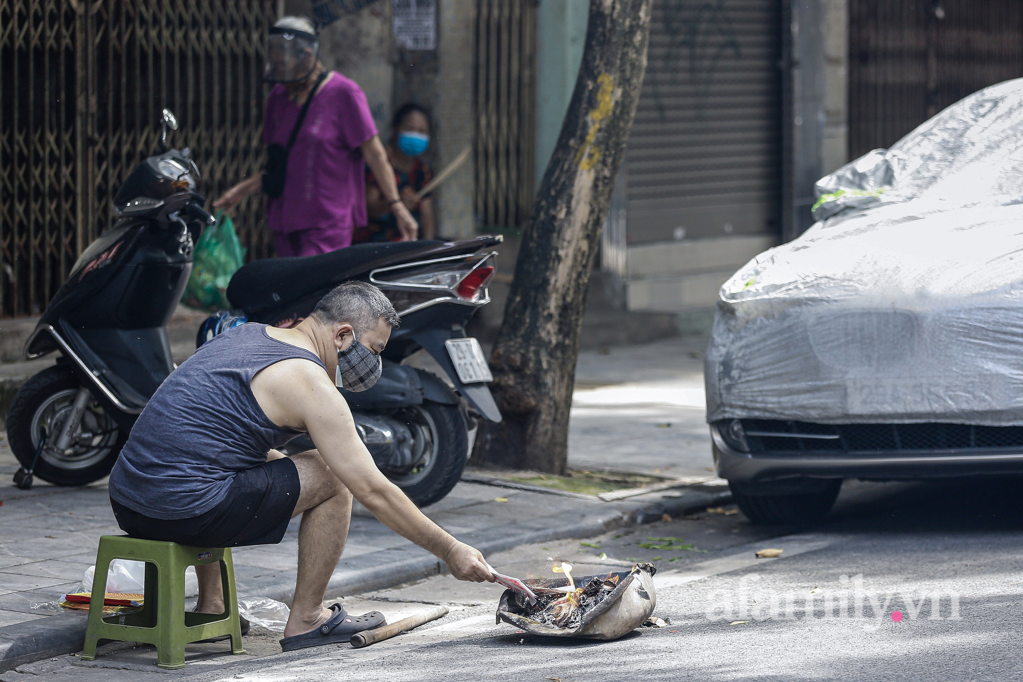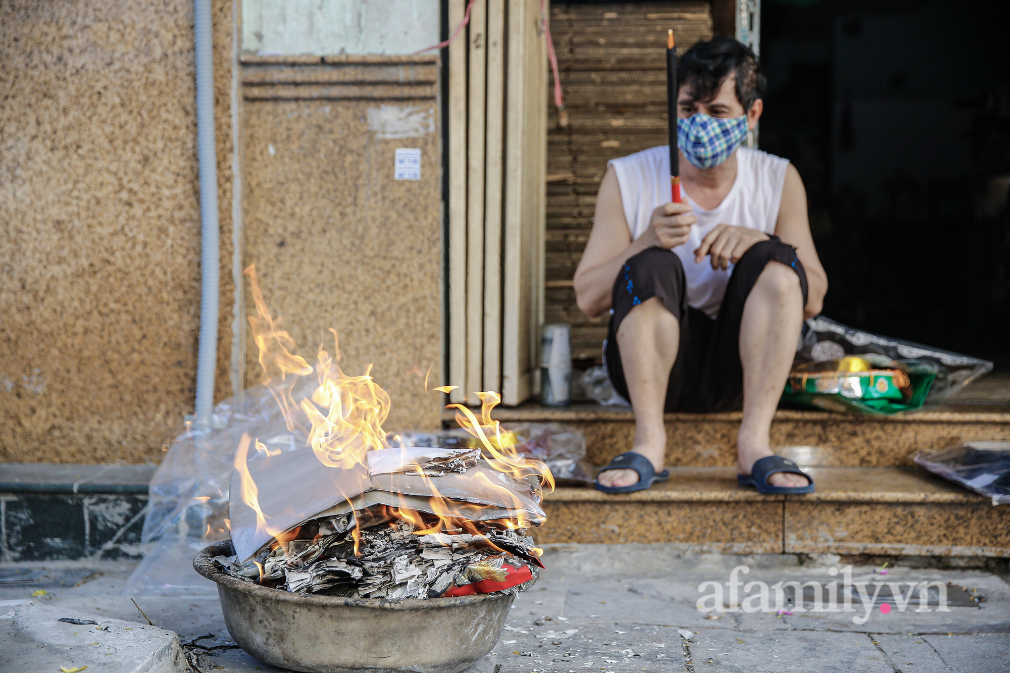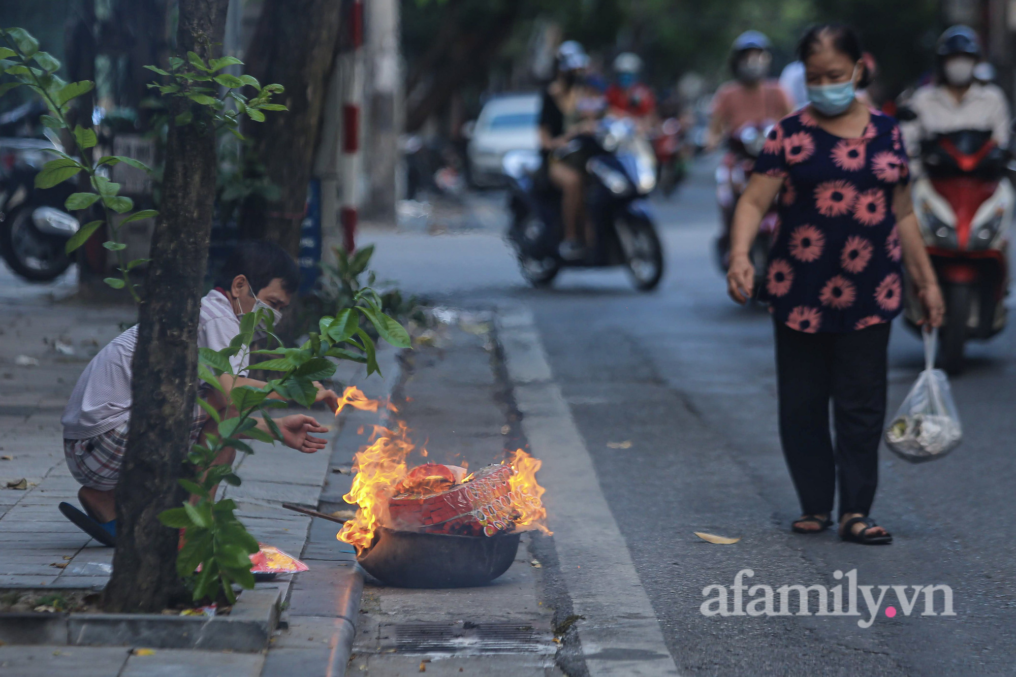 Rằm tháng Bảy năm nay đúng vào thời điểm Hà Nội thực hiện giãn cách xã hội, việc mua sắm tại các chợ, các siêu thị có phần bớt “sầm uất” hơn. Tuy nhiên, hè phố Thủ đô vẫn luôn "đỏ lửa" khi người dân vẫn giữ thói quen đốt vàng mã.