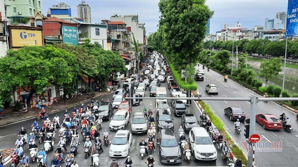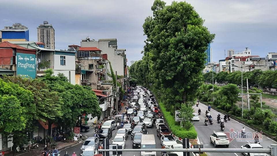 Đường Láng xảy ra ùn tắc vào sáng nay theo hướng Ngã Tư Sở - Cầu Giấy.