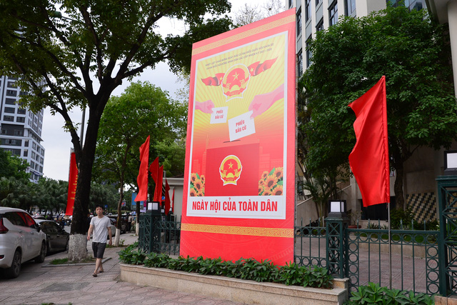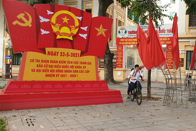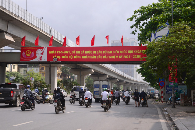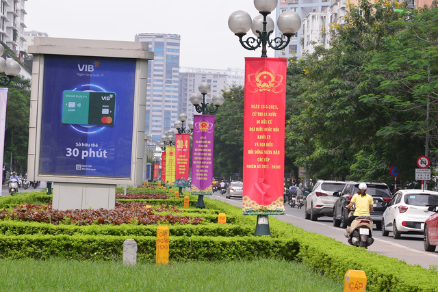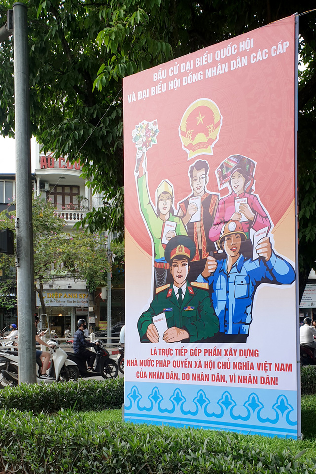 Nhiều đường phố Hà Nội đã bắt đầu treo các tấm pano, áp phích tuyên truyền cổ động cho ngày bầu cử sẽ diễn ra vào ngày 23/5.