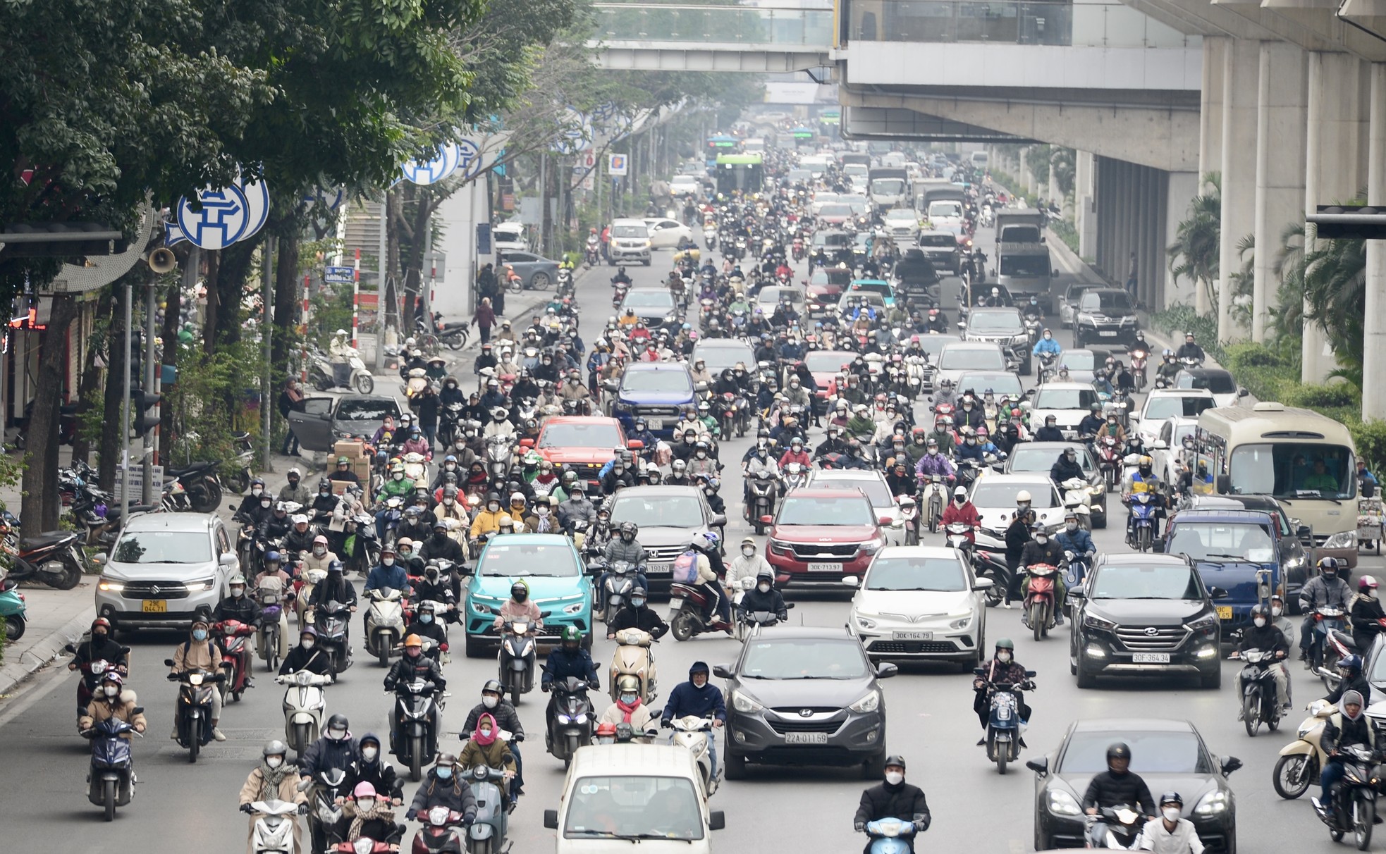 | Đường phố Hà Nội ùn tắc kéo dài. |