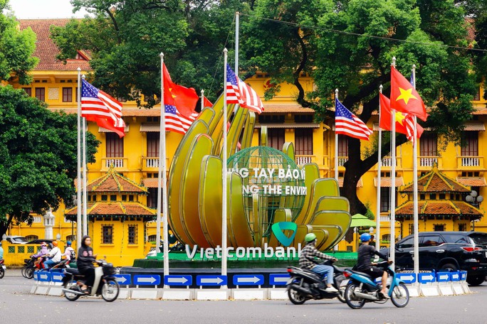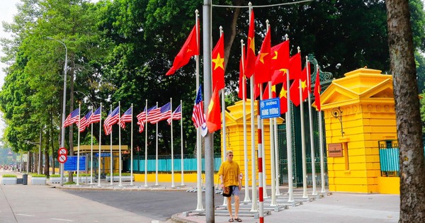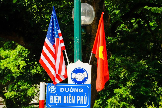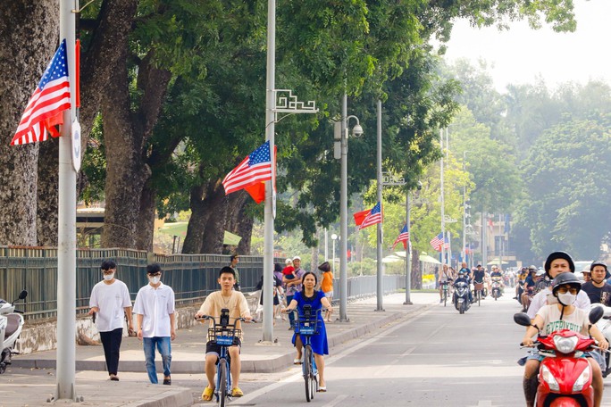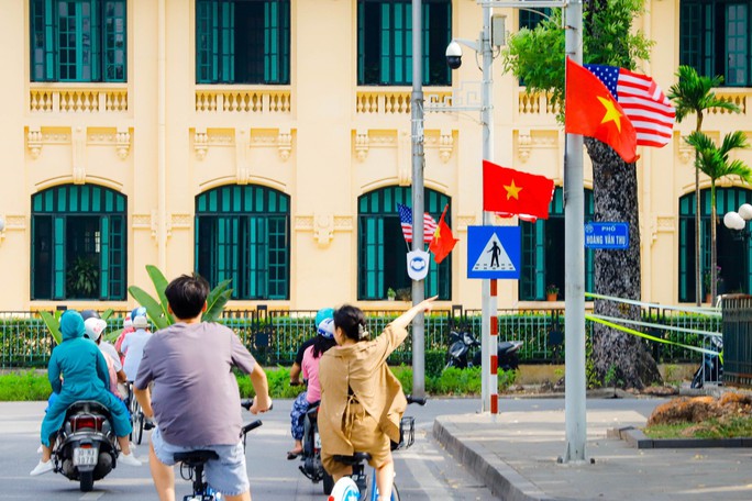 Cờ 2 nước Việt Nam và Mỹ được treo dọc nhiều tuyến phố ở Hà Nội, chào đón Tổng thống Mỹ Joe Biden thăm cấp Nhà nước đến Việt Nam