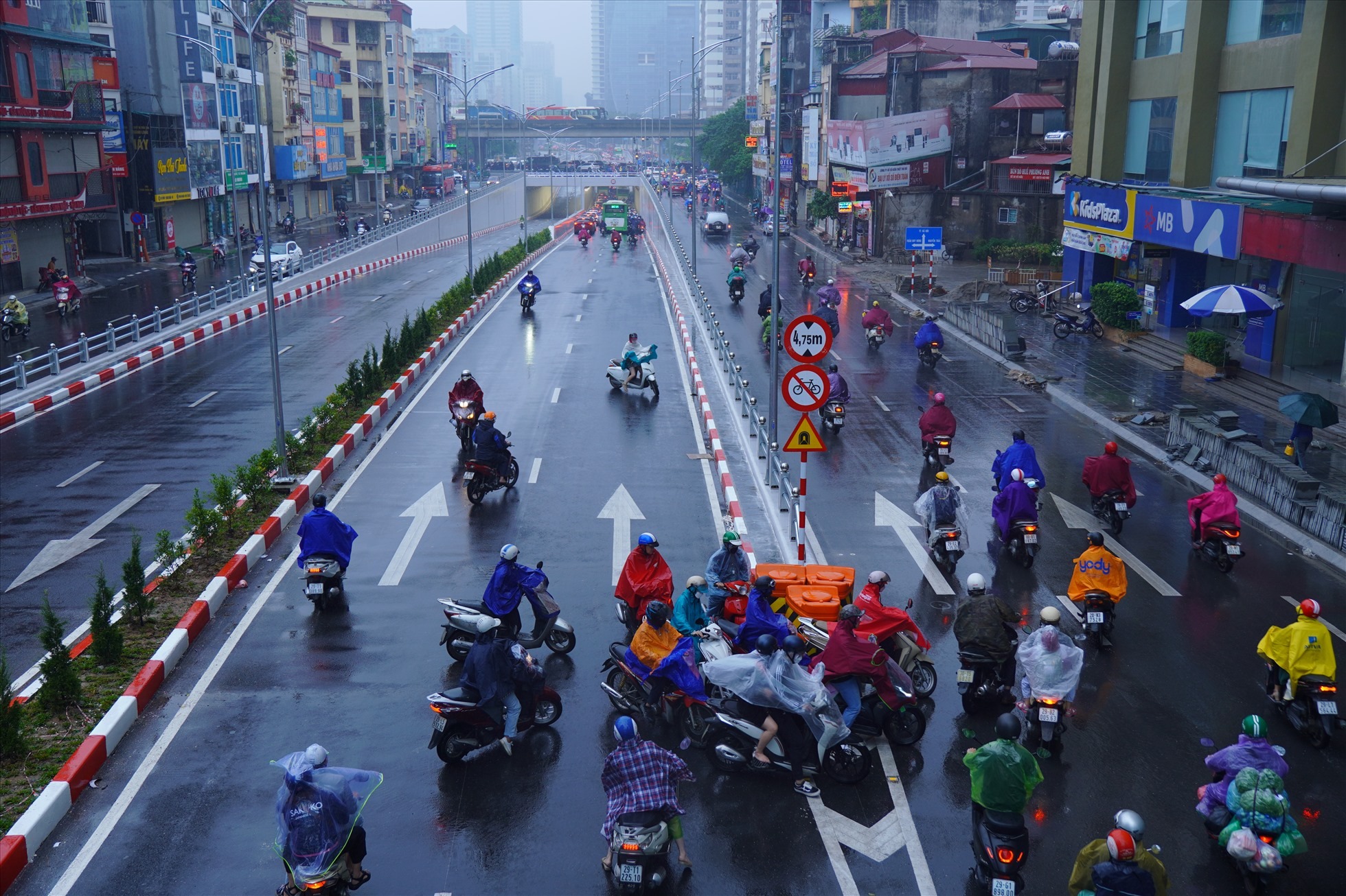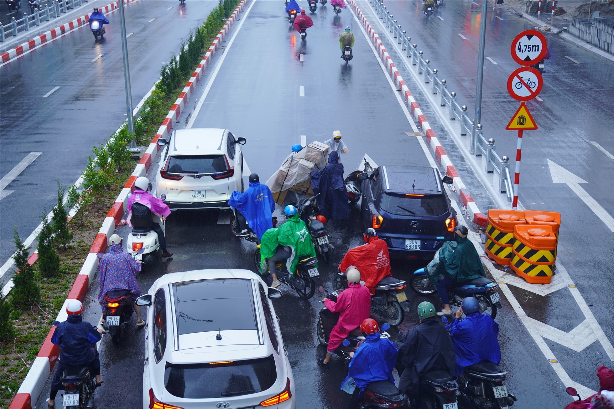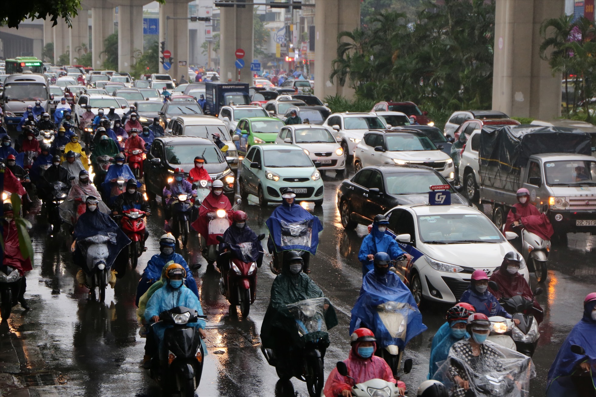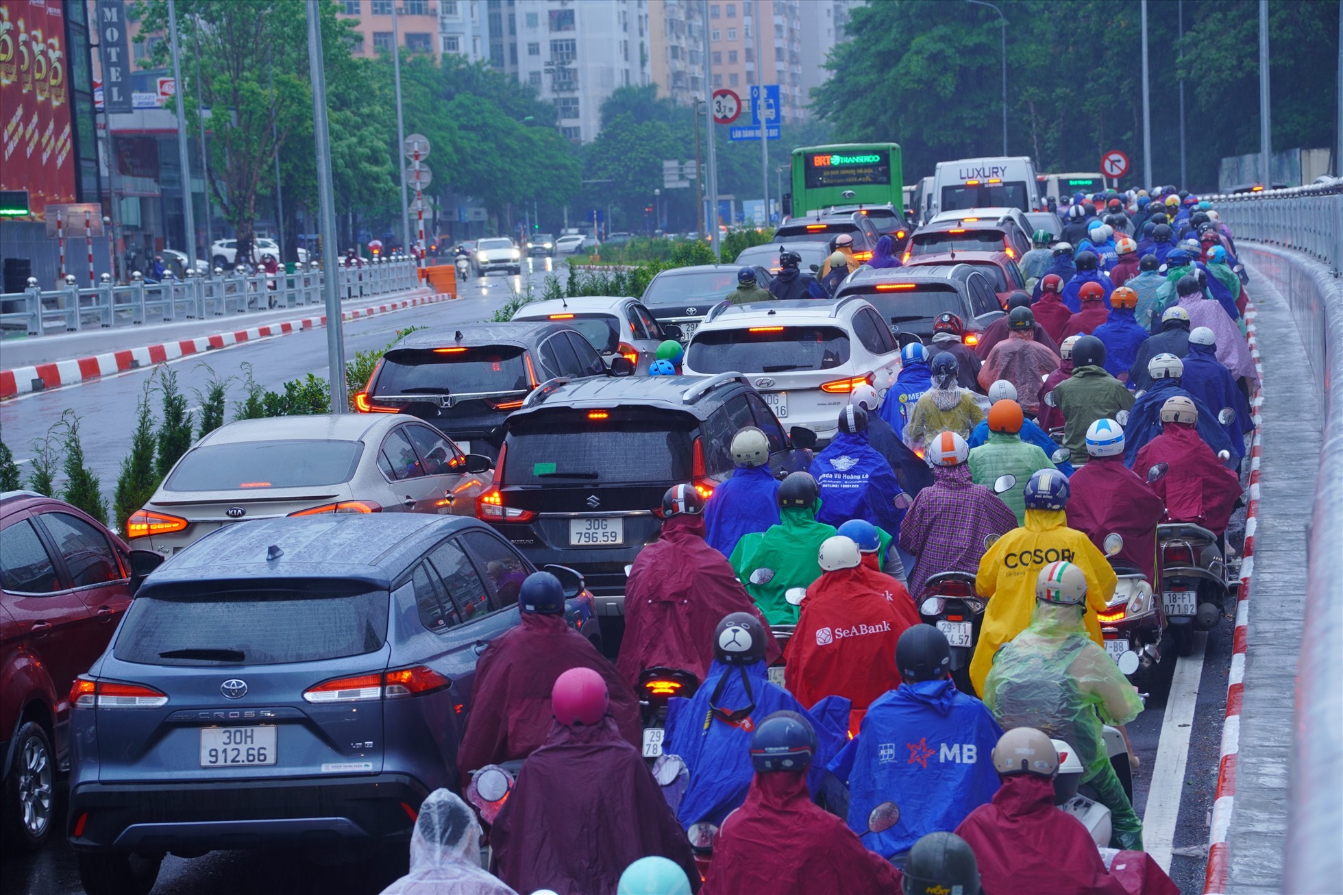 Tại tuyến đường Nguyễn Trãi (hướng từ Thanh Xuân đi Ngã Tư Sở) cũng đông đặc phương tiện. Đặc biệt tại các điểm quay đầu, lượng phương tiện bị dồn ứ ảnh hưởng đến dòng phương tiện đi thẳng.