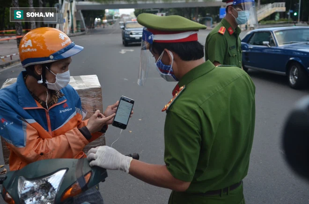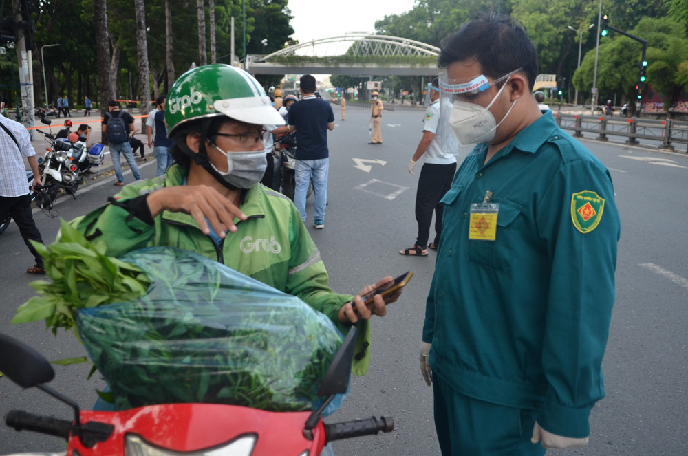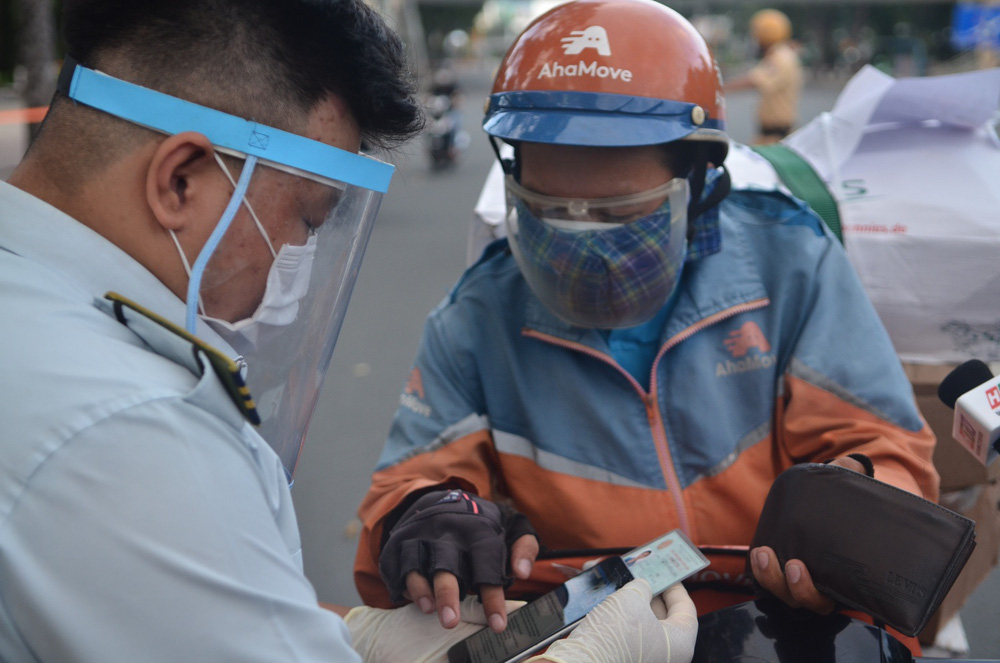 Tại chốt kiểm soát Công viên Gia Định (Q. Phú Nhuận, TP.HCM), có hàng trăm shipper vẫn tiếp tục chạy qua chốt. Theo đó, đối với trường hợp nhận đơn hàng trước 18h mà vẫn phải đi giao sau giờ quy định thì lực lượng sẽ tham gia nhắc nhở và sẽ xử phạt vào ngày hôm sau.