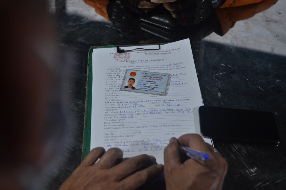 Đến 19h45, lực lượng chức năng xử lý trường hợp của anh Sỳ A Lục (ngụ Q.Tân Bình). Theo đó, anh Lục làm việc tại tỉnh Bình Phước. 13h ngày 26/7, anh xuất phát về nhà riêng tại Q. Tân Bình, nhưng đến CV Gia Định thì đã 19h45 - quá giờ quy định. Đây là trường hợp xử phạt duy nhất đối với quy định ra đường sau 18h với lý do không cần thiết.