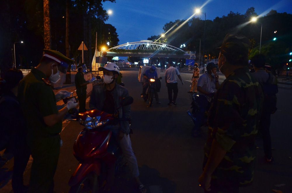 18h ngày 26/7, TP.HCM bắt đầu áp dụng biện pháp hạn chế người dân ra đường, cơ quan chức năng siết chặt việc kiểm tra người dân.
