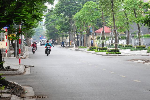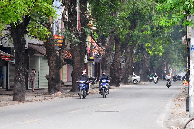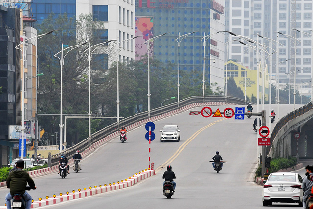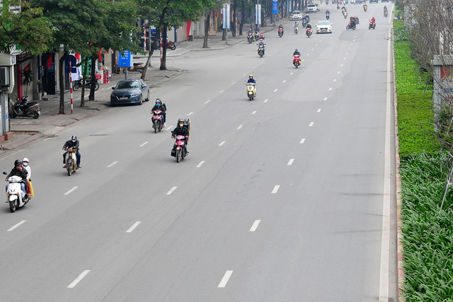 Tại các tuyến đường thường xuyên đông người tham gia giao thông như Lê Văn Lương, Láng, Nguyễn Chí Thanh ... đã trở lại vắng vẻ gần như những ngày đầu áp dụng quy định hạn chế ra đường của thành phố Hà Nội.