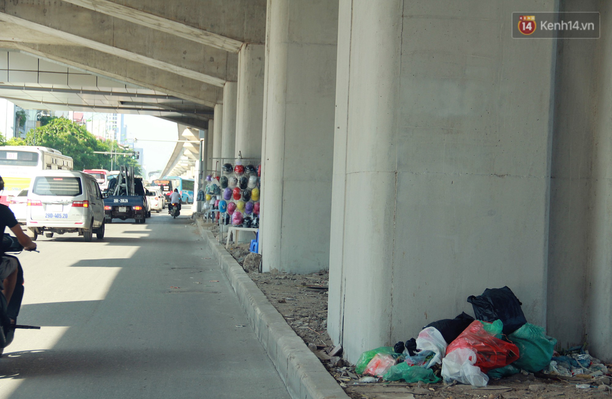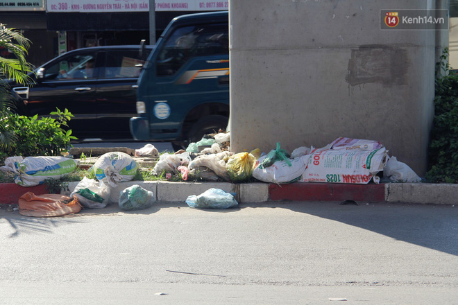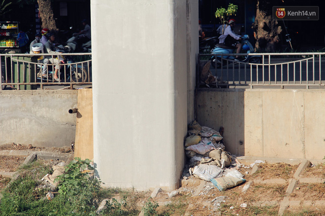 Theo ghi nhận của chúng tôi, dọc tuyến đường sắt trên cao Cát Linh – Hà Đông dưới các chân nhà ga bắt đầu trở thành nơi tập kết rác thải của người dân, nhiều điểm rác được tập kết tràn lan ra đường gây mất an toàn giao thông. Một số điểm trở thành nơi trú ngụ của người vô gia cư, thậm chí trở thành nơi nuôi nhốt gà của người dân.