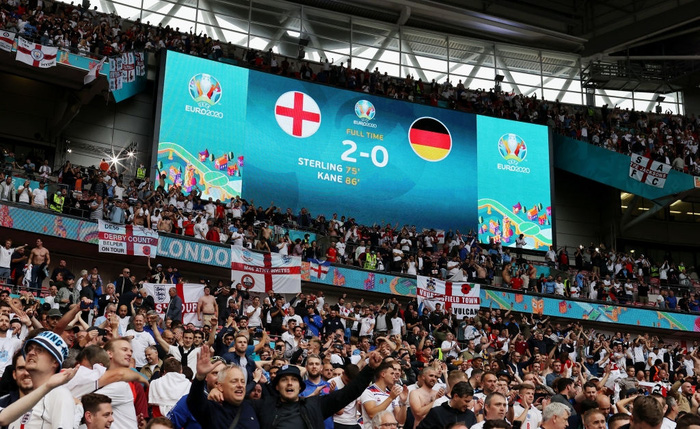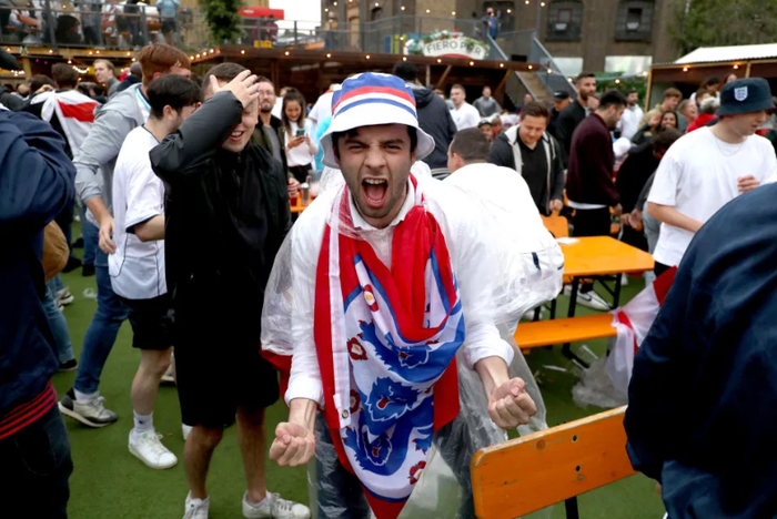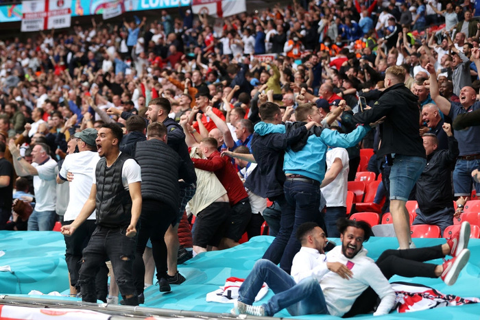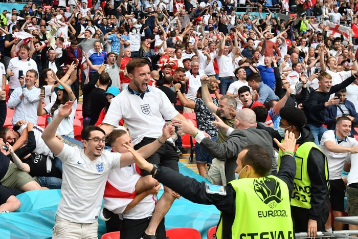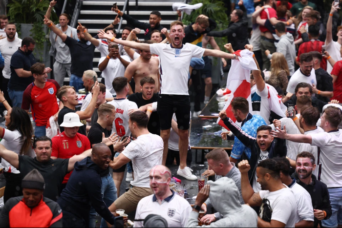 Người hâm mộ của tuyển Anh ăn mừng cuồng nhiệt sau khi thầy trò HLV Gareth Southgate tiến vào tứ kết Euro 2020.