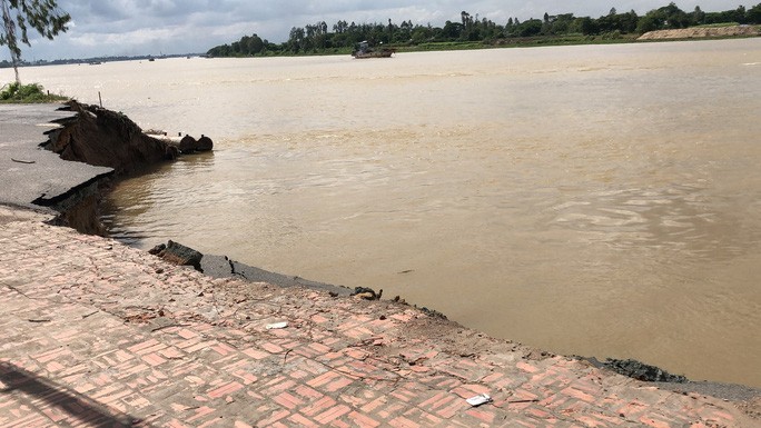 Quốc lộ 91, đoạn qua tỉnh An Giang, liên tục sạt lở nghiêm trọng, từng lớp bê tông rơi xuống và sạt lở đang ăn sâu vào sát nhà dân.