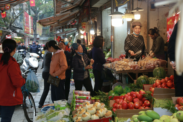 Ghi nhận của chúng tôi lại chợ Hàng Bè (Hà Nội) trong sáng nay, khu phố liên tục tấp nập cảnh mua bán các món đồ lễ như xôi, gà, hoa quả… Đa số mọi người đều tranh thủ đi chợ sắm lễ để còn quay lại với công việc thường nhật.