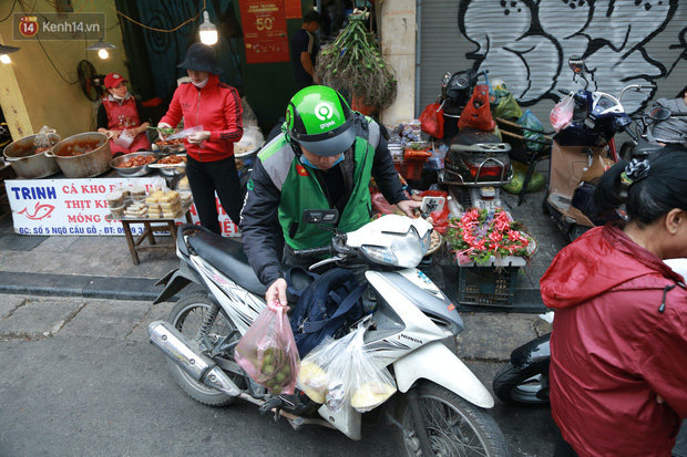 Từ sáng sớm, nhiều shipper đã phải "chạy" liên tục để đáp ứng nhu cầu của khách hàng. Theo chủ cửa hàng bán gà cánh tiên tại đây cho biết, do ngày Rằm tháng Chạp không trùng với ngày nghỉ nên đa số mọi người đặt mua hàng online, những ngày lễ tết như hiện nay có thể bán được hàng trăm con mỗi ngày.