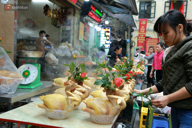 Mặt hàng thu hút lượng khách mua nhiều nhất là gà cánh tiên - gà trống được luộc chín với bông hồng cài mỏ. Mỗi con gà đều được tuyển chọn cẩn thận với cân nặng từ 1,8 - 2,5 kg, mổ làm sạch rồi luộc chín.