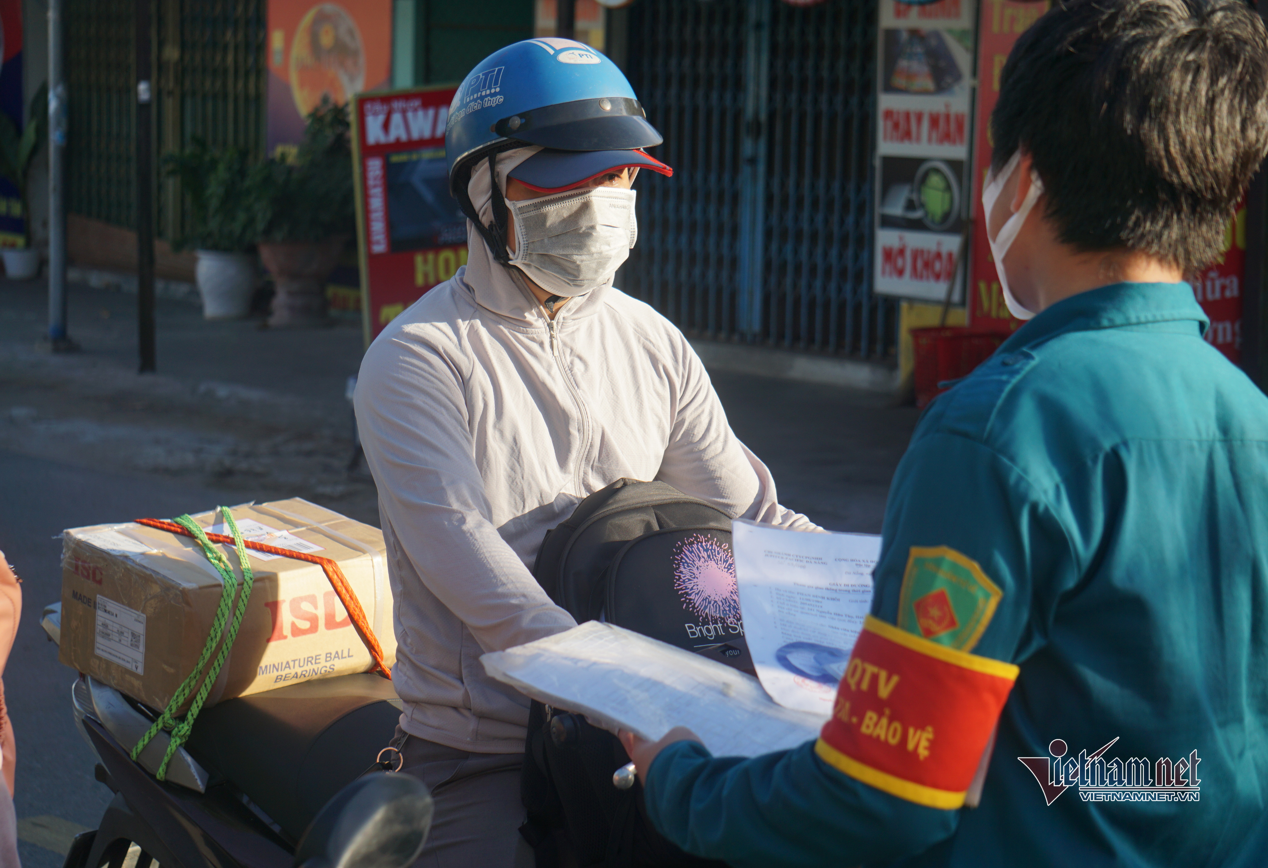 Để tránh trường hợp lợi dụng việc đi đổi ca để ra ngoài, tại các con ngõ ở khu dân cư, lực lượng ban điều hành Tổ dân phố kiểm tra nghiêm các loại giấy tờ tuỳ thân, thông tin công ty người đi làm.