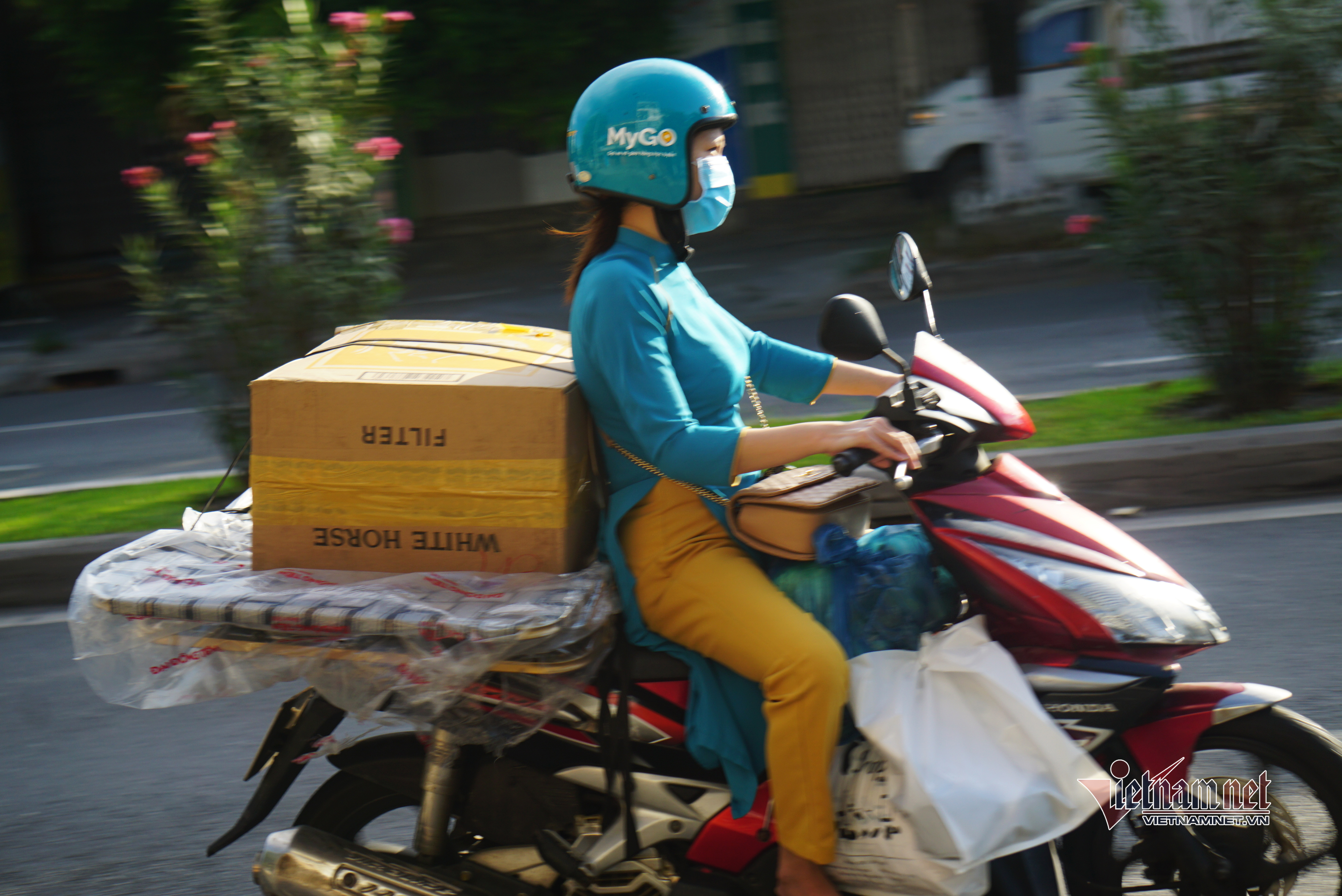 Sáng nay, trên các tuyến đường đông người dân di chuyển đến công ty làm việc. Với thời gian 10 ngày ở lại công ty, nhiều người lỉnh kỉnh mang theo ba lô quần áo, mì gói, quạt, chăn, màn… để sử dụng.