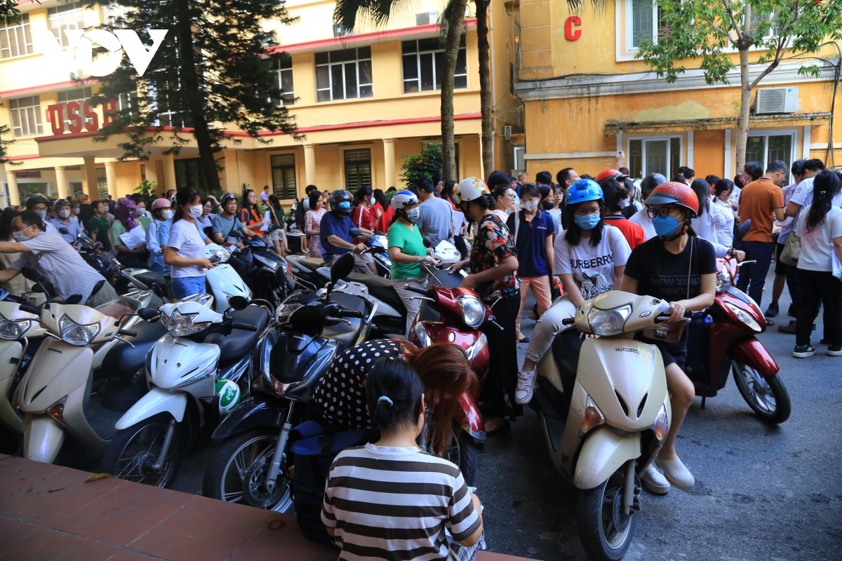 Sáng 2/6, đường Nguyễn Trãi (Thanh Xuân, Hà Nội) kẹt cứng do phụ huynh đỗ xe máy, ôtô tràn xuống lòng đường để đợi con thi vào trường THPT Chuyên Khoa học Xã hội và Nhân văn và THPT Chuyên Khoa học Tự nhiên – Đại học Quốc gia Hà Nội.