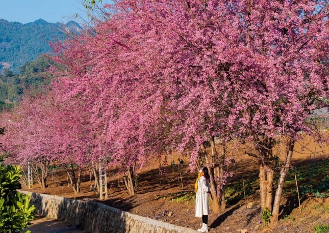 Mỗi độ xuân về, nhiều địa điểm tại huyện Mộc Châu lại rực rỡ trong sắc hồng dịu dàng của hoa mai anh đào với vẻ đẹp mê hồn. Những cung đường ở Mộc Châu cũng trở thành điểm hẹn lý tưởng để giới trẻ thỏa sức check-in, ghi dấu khoảnh khắc thanh xuân trong khung cảnh thơ mộng, lãng mạn.