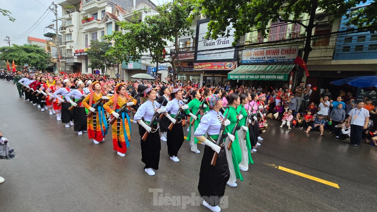 Đoàn diễu hành đi qua các đường phố Điện Biên Phủ trong sự reo hò, phấn khích của người dân.