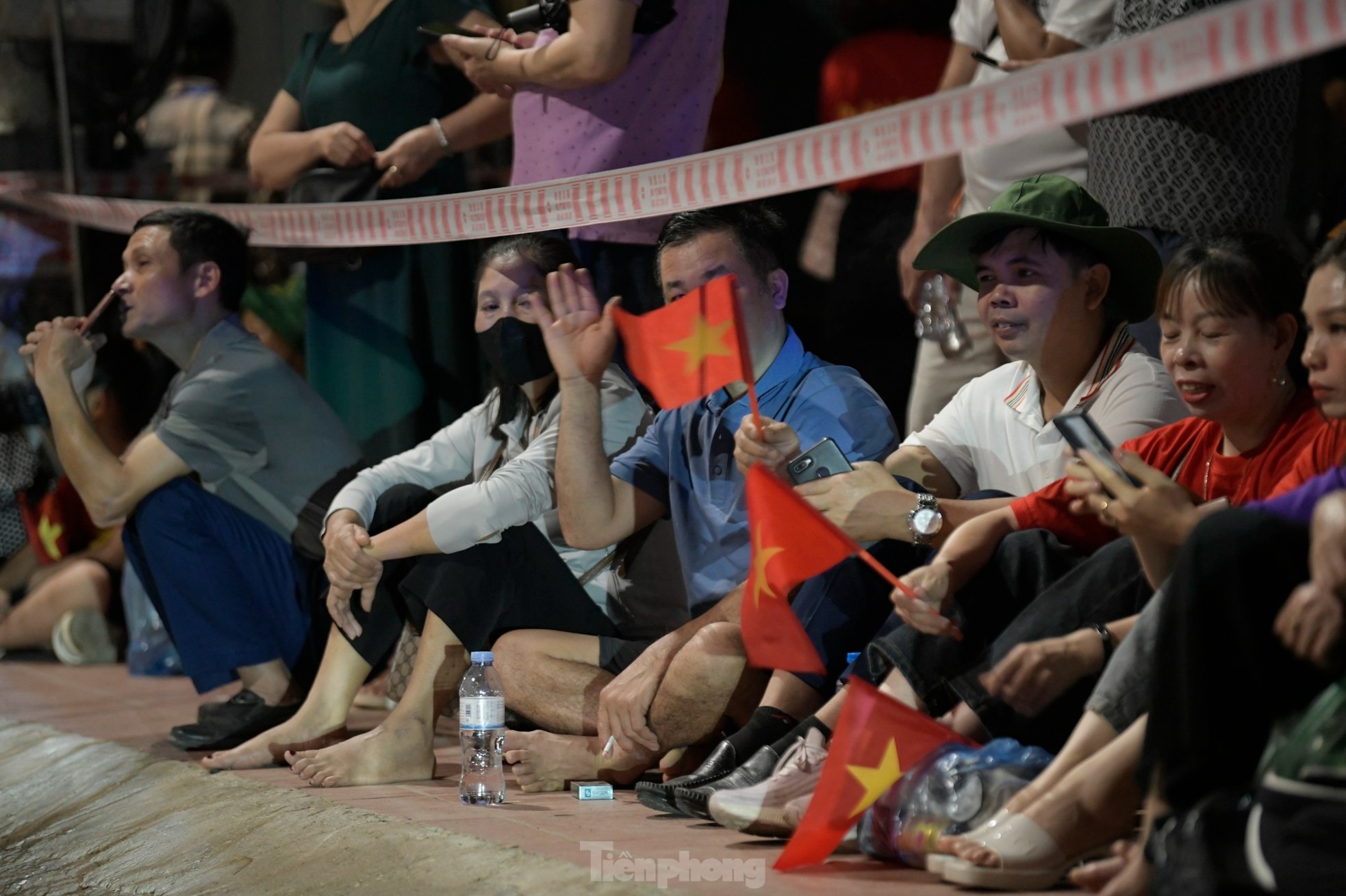 Tờ mờ sáng 7/5, nhiều người dân Điện Biên và du khách có mặt phía ngoài sân vận động tỉnh Điện Biên ngồi "xí" chỗ chờ đến lễ kỷ niệm 70 năm chiến thắng Điện Biên Phủ.