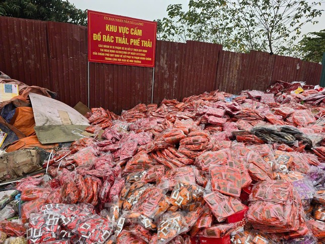 Tại Khu công nghiệp La Phù (Hoài Đức, Hà Nội), hiện có rất nhiều bánh kẹo đổ tràn lan ở bãi rác, thậm chí tràn ra cả đường giao thông. Chính quyền địa phương cho biết, người dân đổ rác nhiều quá, đã dọn từ trước Tết Nguyên đán nhưng vẫn không hết.