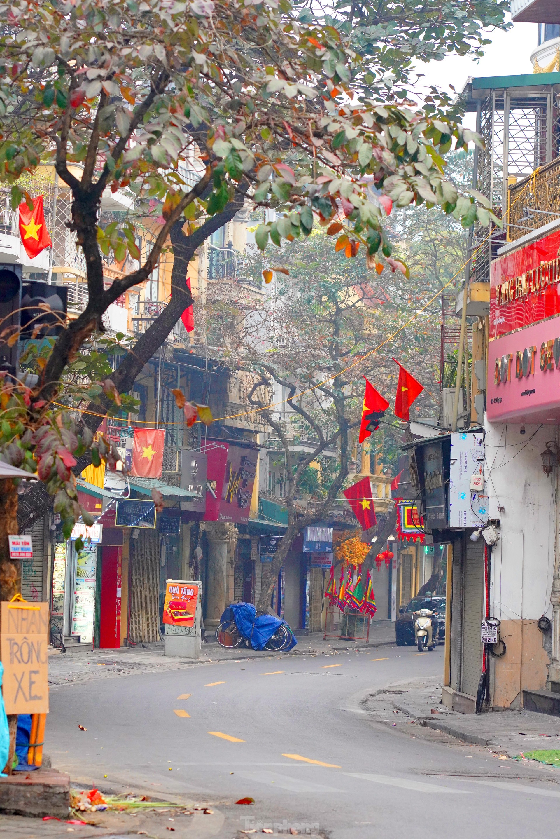 Sáng mùng Một hằng năm là khoảng thời gian hiếm hoi mà không gian phố phường Hà Nội chìm vào tĩnh lặng, và đây đó thoáng điểm chút phong vị Tết xưa.