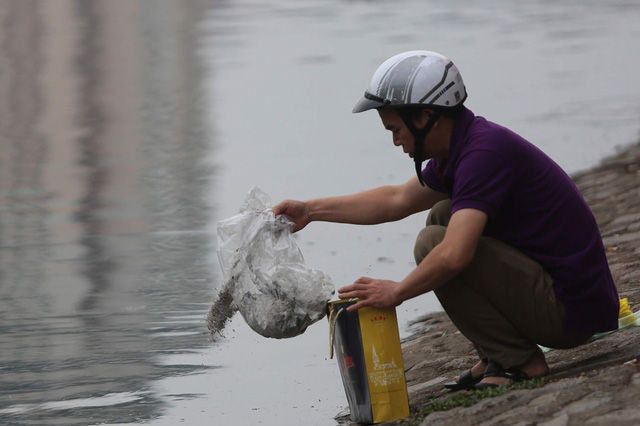 Chỉ ít lâu sau khi người dân thả cá chép đỏ tiễn Táo quân về trời tại hồ Hoàng Cầu, nhiều cá đã bị chết.