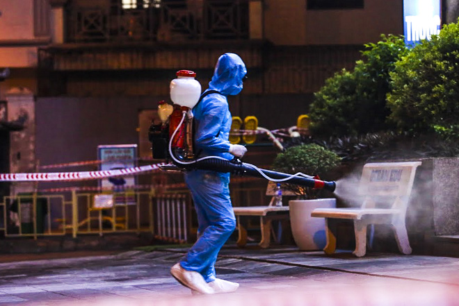 Đêm 3/6, lực lượng chức năng tiến hành phong toả, cách ly tạm thời chung cư Hemisco để tiến hành phun tiêu độc, khử trùng sau khi phát hiện tại đây có 1 người dương tính với SARS-CoV-2.