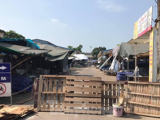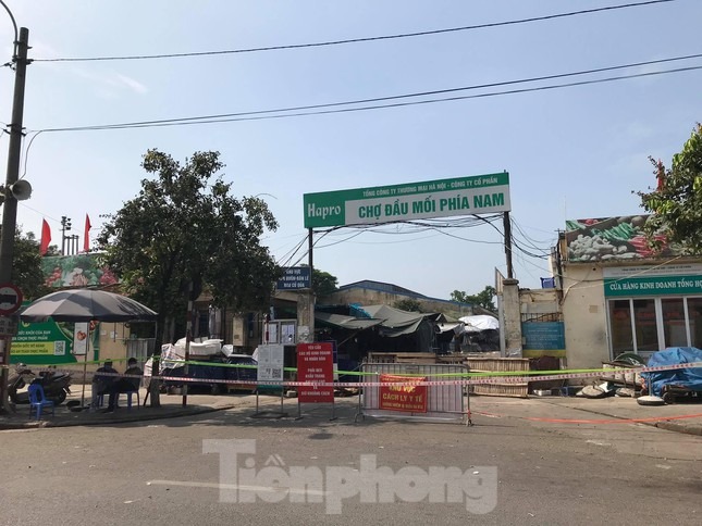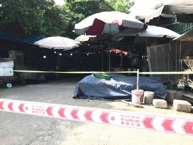 Sáng 28/7, lực lượng chức năng đã căng dây, phong tỏa toàn bộ khu vực chợ đầu mối phía Nam (phường Hoàng Văn Thụ, quận Hoàng Mai) để phòng chống COVID-19.