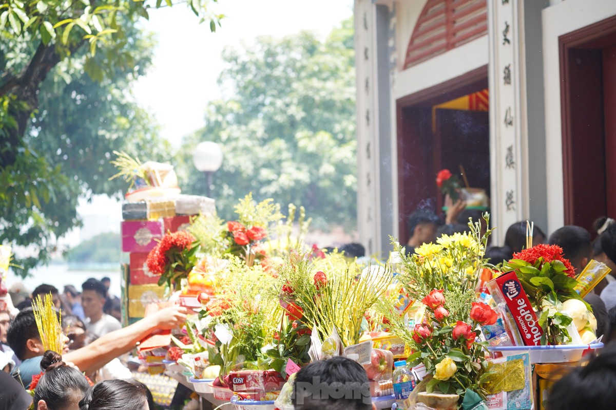 Sáng 4/8 (tức mùng 1 tháng 7 Âm lịch), rất đông người dân Thủ đô đổ về Phủ Tây Hồ để dâng lễ cầu an, mong một tháng mới bình an.