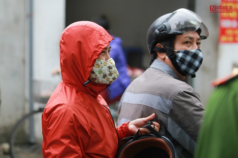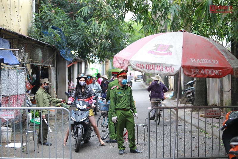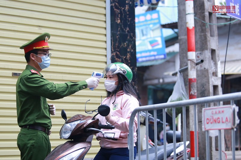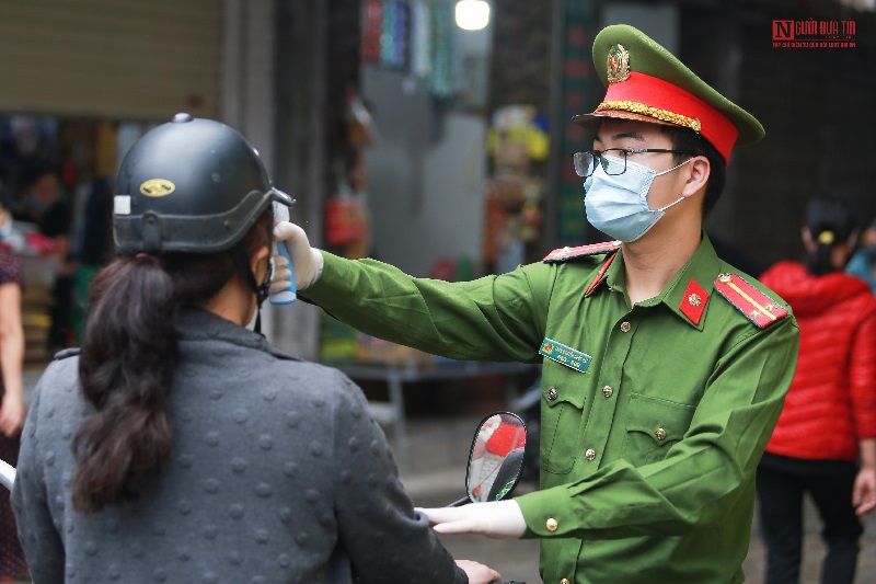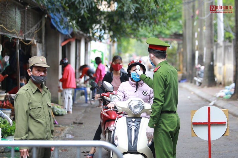 Sáng 17/4, Công an phường Đông Ngạc, quận Bắc Từ Liêm (Hà Nội) lập nhiều chốt kiểm soát, đo thân nhiệt những người ra vào chợ trong đó phát hiện 1 trường hợp có thân nhiệt gần 38 độ và ngay lập tức yêu cầu vào trung tâm y tế phường.