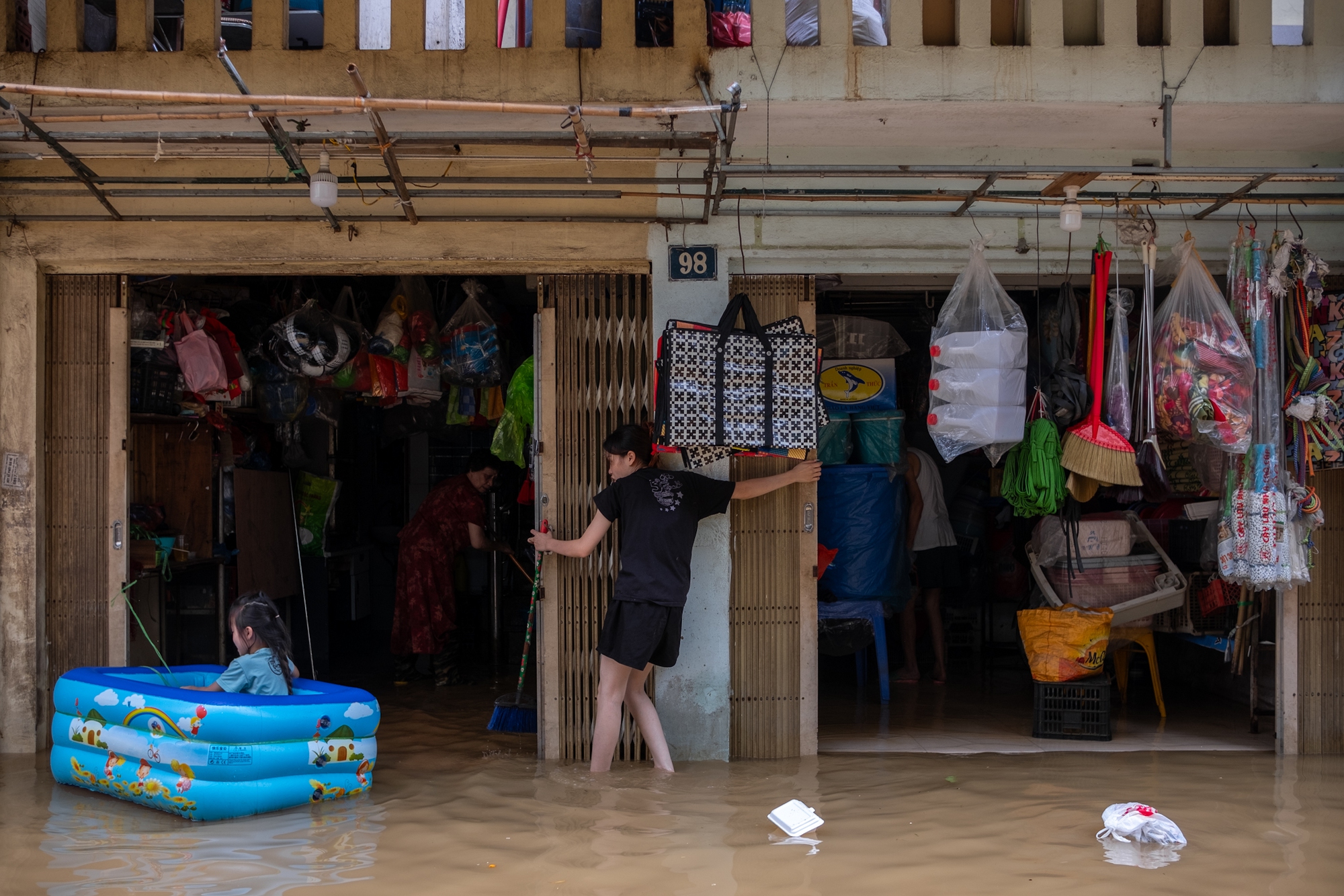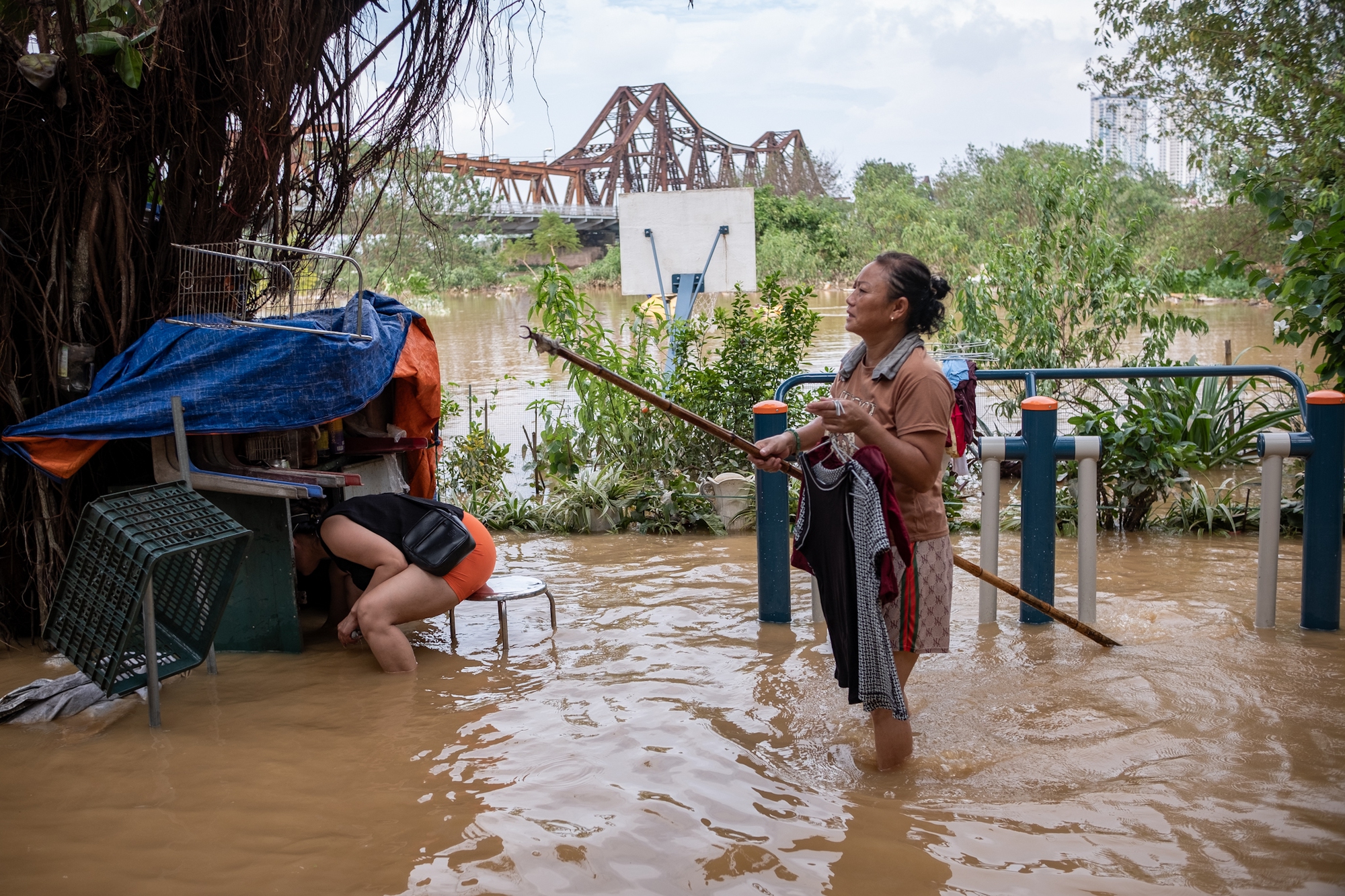 Mưa lớn, mực nước sông Hồng dâng cao đã khiến người dân phường Phúc Tân (Hoàn Kiếm, Hà Nội) sống trong cảnh 'chạy' lũ.