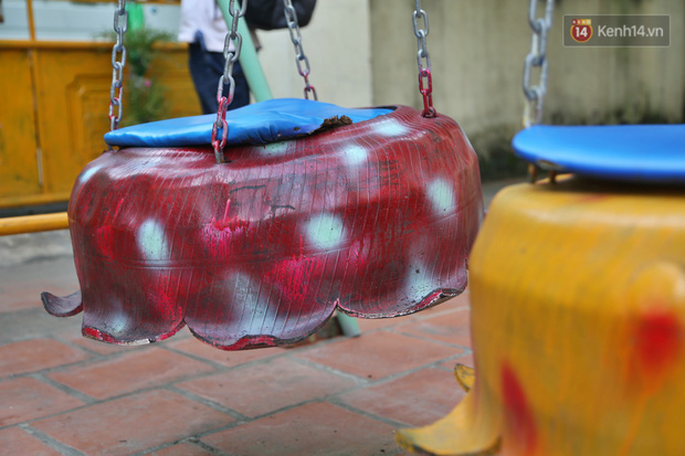Những chiếc lốp xe ô tô cũ, mảnh tôn, mảnh gỗ hay vỏ chai lọ không còn giá trị sử dụng được tái chế tạo thành những giỏ hoa, bập bênh, xích đu xinh xắn với nhiều màu sắc.