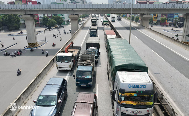 Trưa 21/9, tuyến đường cầu cạn vành đai 3 bất ngờ ùn tắc kéo dài sau nhiều tháng vắng bóng phương tiện.