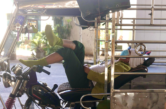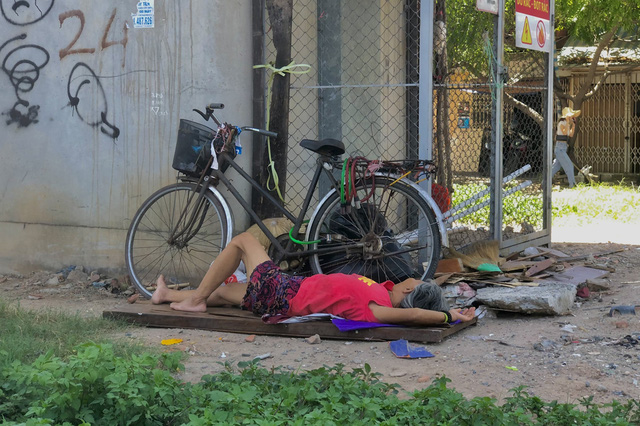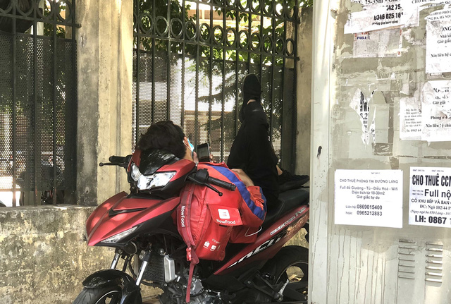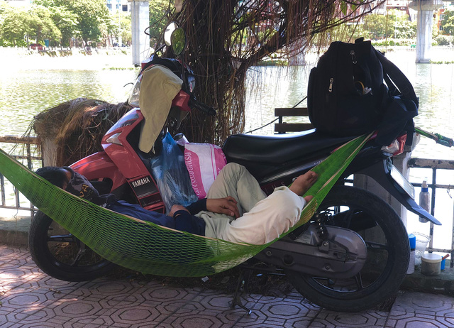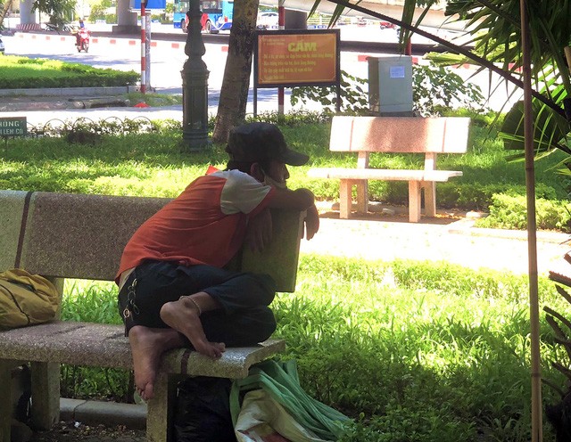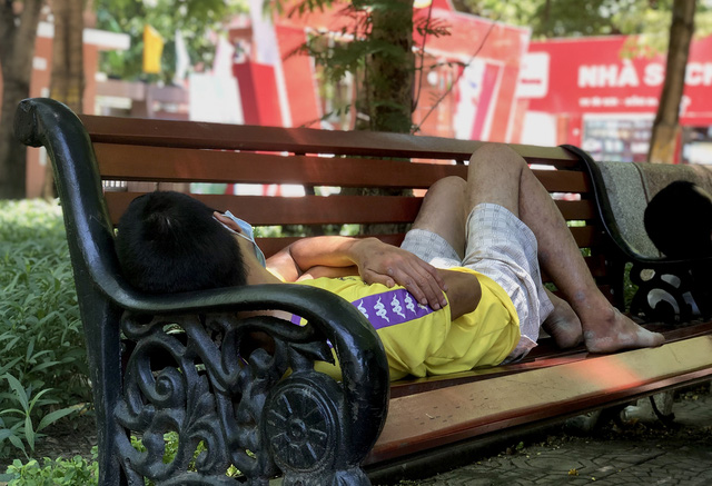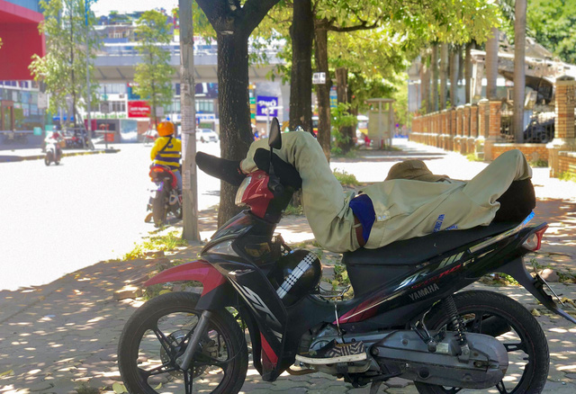 Dưới cái nắng "như thiêu như đốt", đông đảo người lao động, người dân không về nhà mà lựa chọn ngủ dưới bóng cây, vườn hoa, thậm chí ngay trên chiếc xe máy.