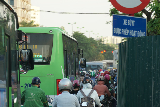 Do không có vỉa hè, nhiều người dân đi bộ phải di chuyển dưới lòng đường, chặn đầu một loạt phương tiện giao thông đang di chuyển.