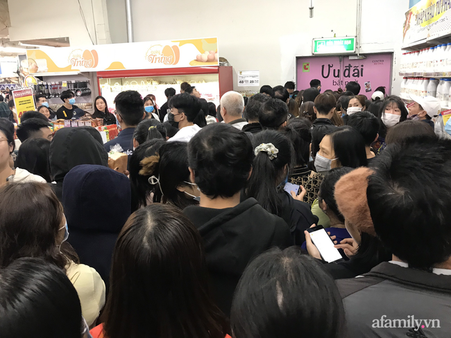 Tại một trung tâm thương mại ở Hà Nội, vào lúc 23h30 phút lượng người đồ dồn về đây mỗi lúc một đông. Bên trong khu vực mua sắm, hàng nghìn người chen lấn chờ mua hàng giảm giá khiến khu vực bên trong siêu thị rơi vào tình trạng quá tải.