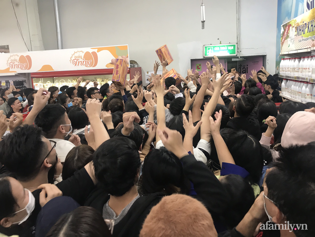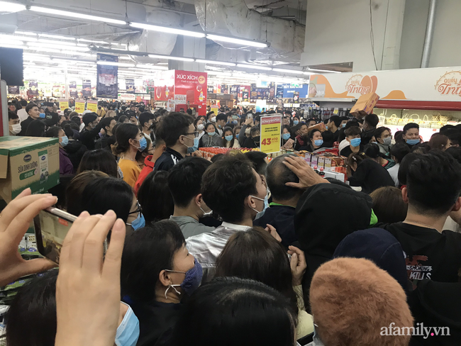 | Người dân chen lấn mua hàng giảm giá tại siêu thị. |